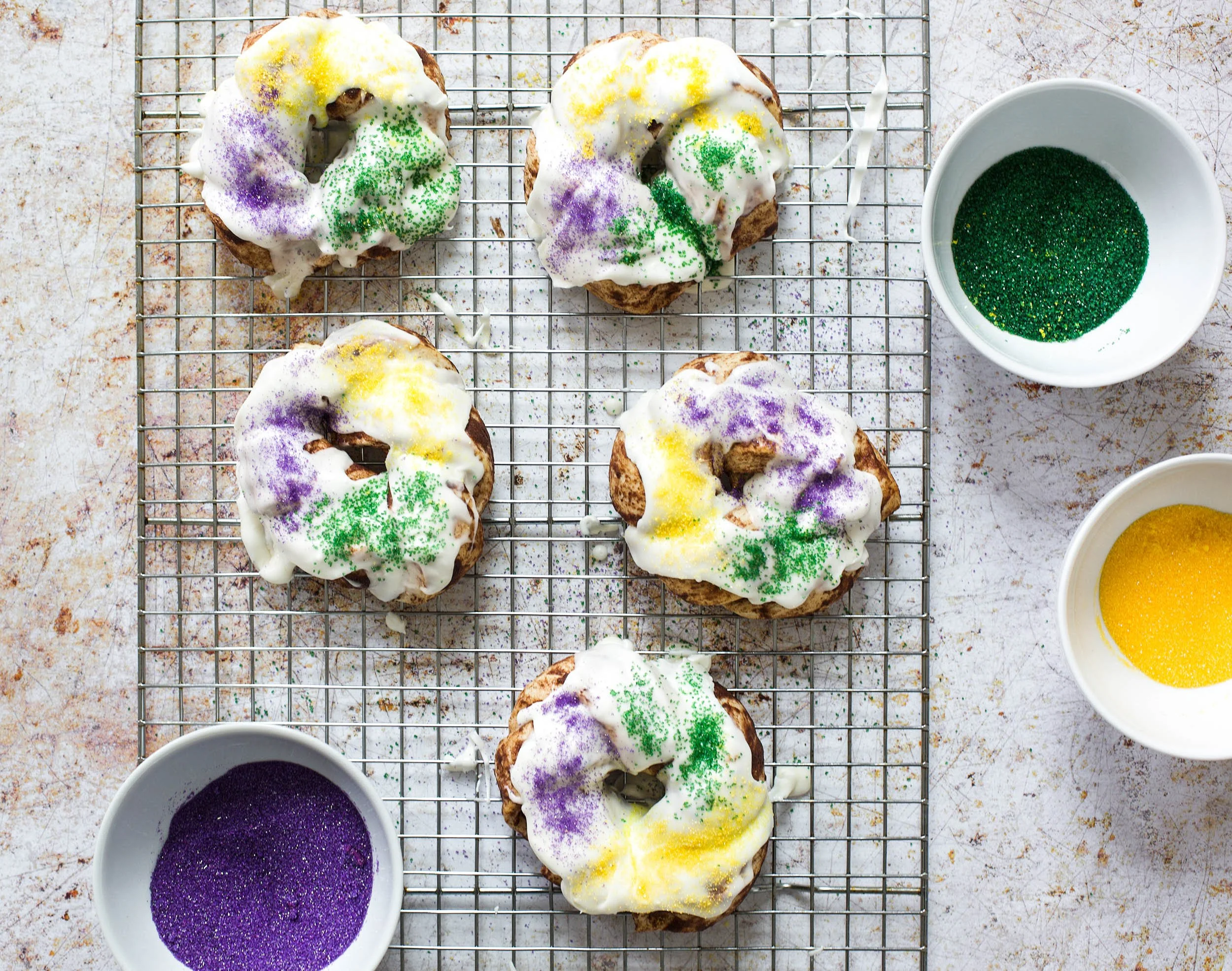 How cute are they? So great for a festive weekend breakfast or to serve as dessert for any get together. I can’t wait for you to give these a try at home for yourself whether you celebrate Mardi Gras or not!