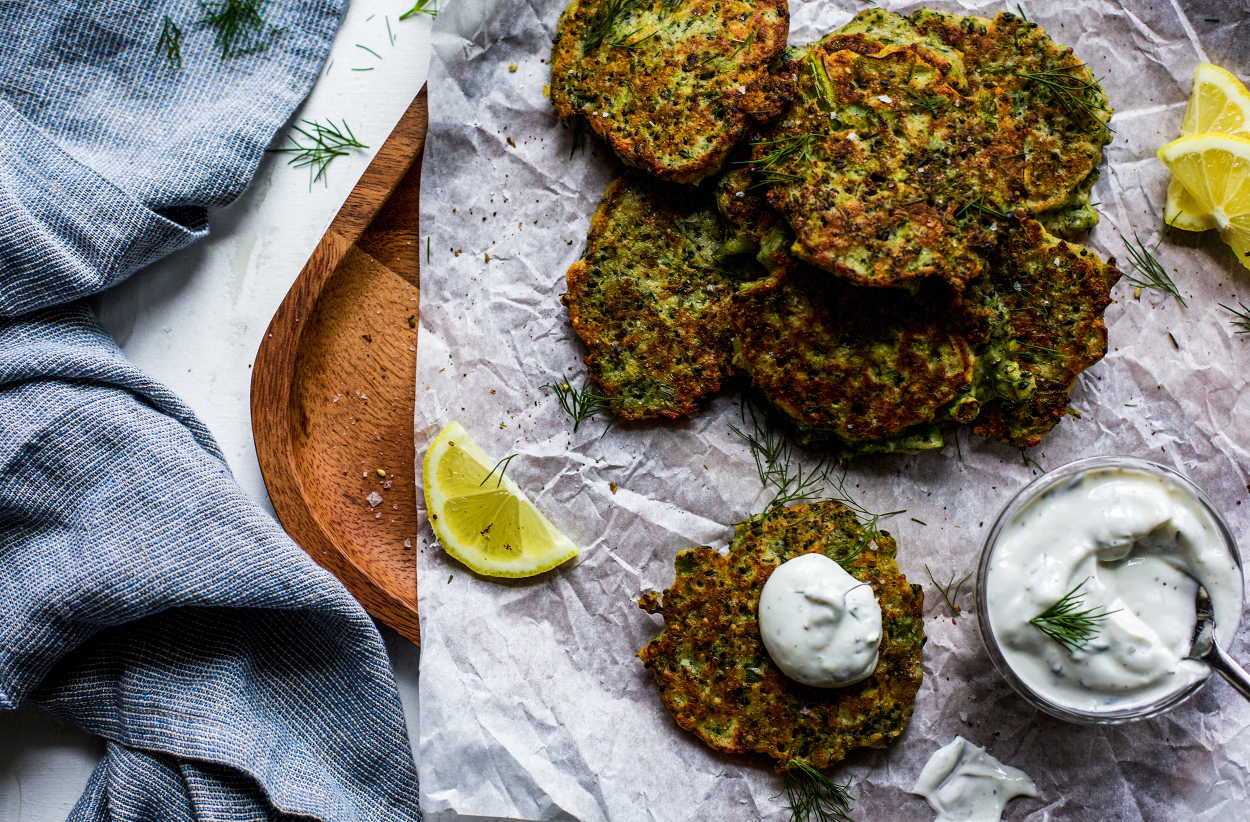 I have a love hate relationship with the time change. On one hand I love more evening light, but on the other hand it takes me a week or two to adjust to not feeling behind from the time I get up in the morning! All week i have been feeling like I just can’t get ahead of my schedule and I already know easy recipes are a must this week in order to survive! Fritters are one of those recipes that I love making because you can combine whatever you have in the fridge and make something super yummy that can stand on it’s own or be served alongside your favorite dish. My easy gluten free broccoli cheese fritters with za’atar yogurt dip are perfect to make any night of the week!