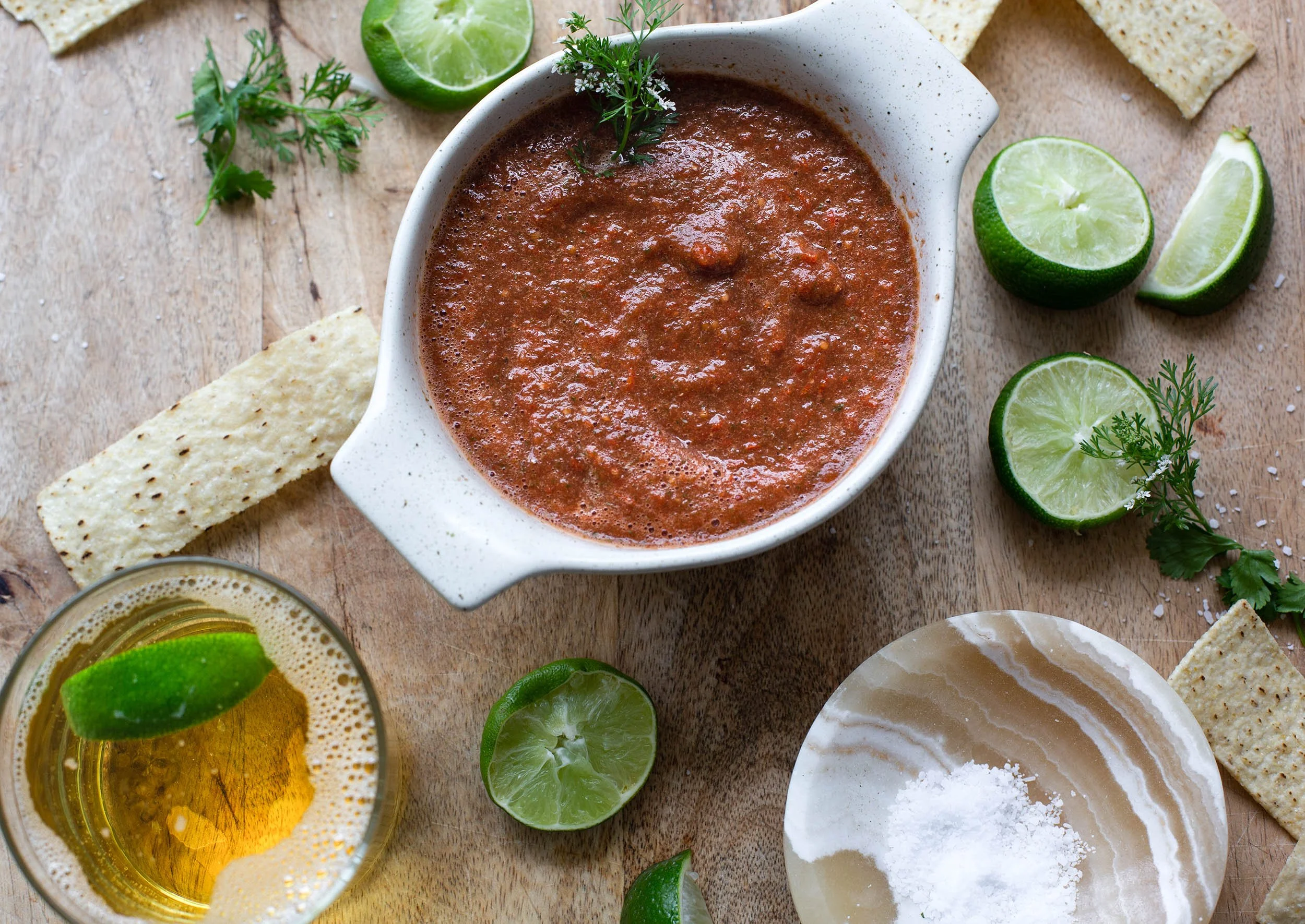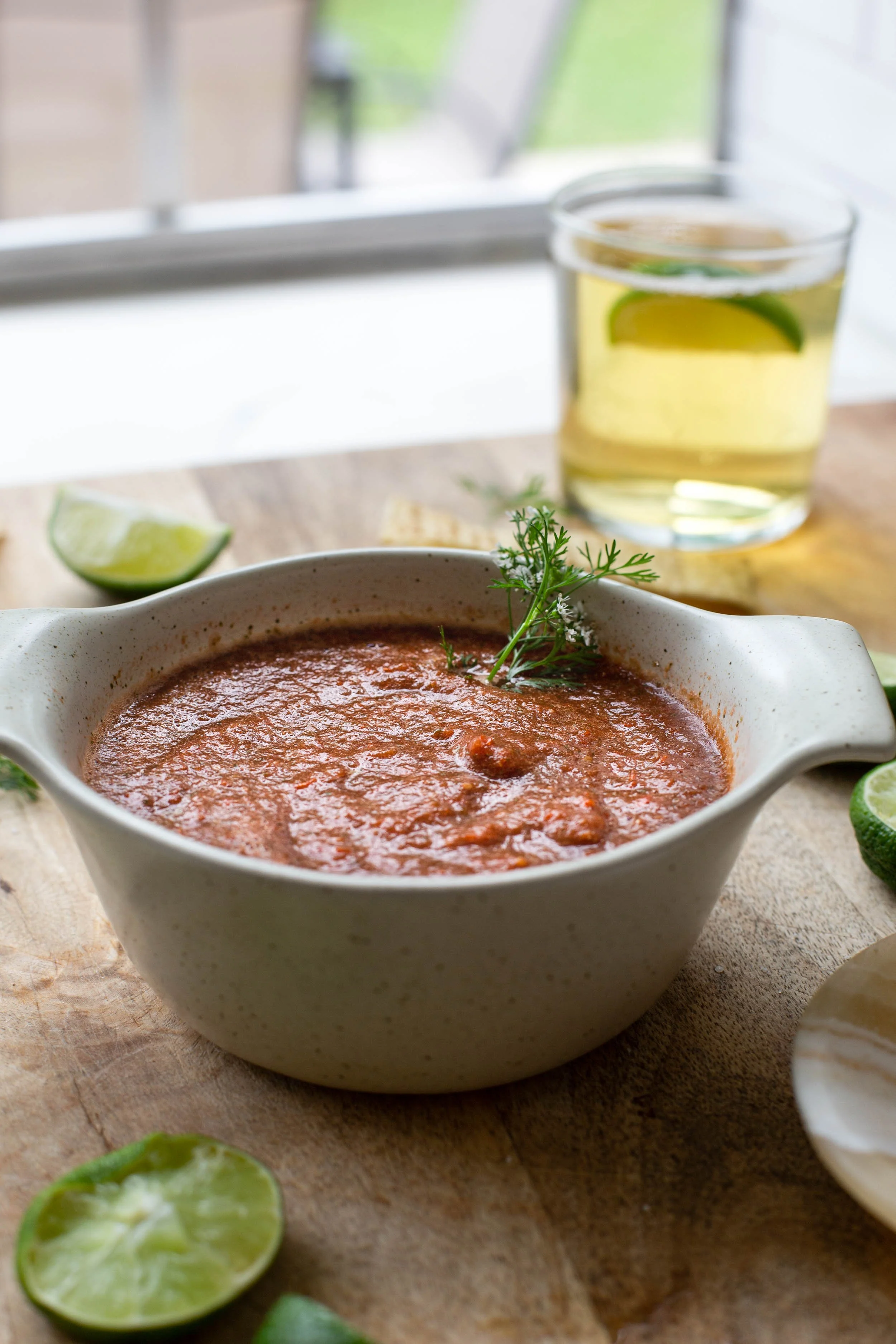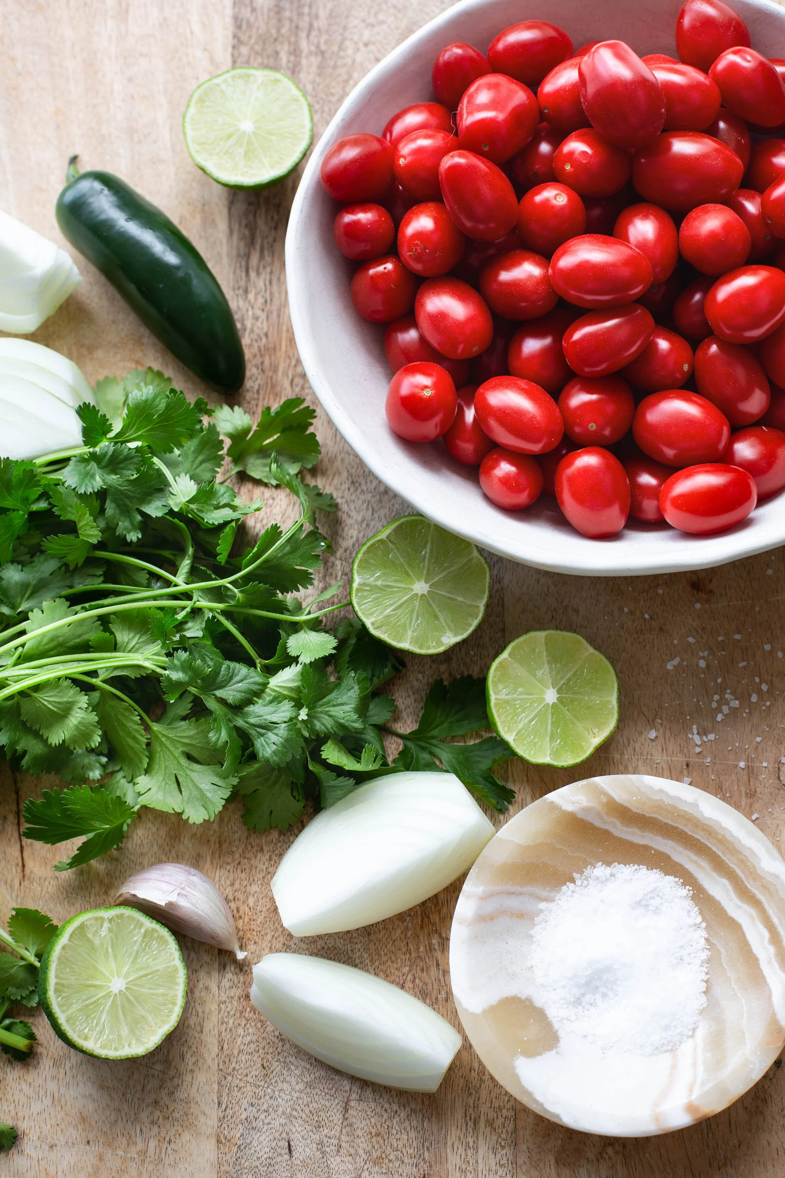 I like to use fresh tomatoes, jalapeno, cilantro, onion, and garlic with lots of fresh lime juice. While a lot of salsas are made with fresh ingredients like this, I like to give some of the ingredients a nice char before blending them up, which adds a depth of flavor and takes away that super acidic taste that simply using fresh tomatoes can give. This method does require one extra step, but in my opinion it’s 100% worth it for taste!