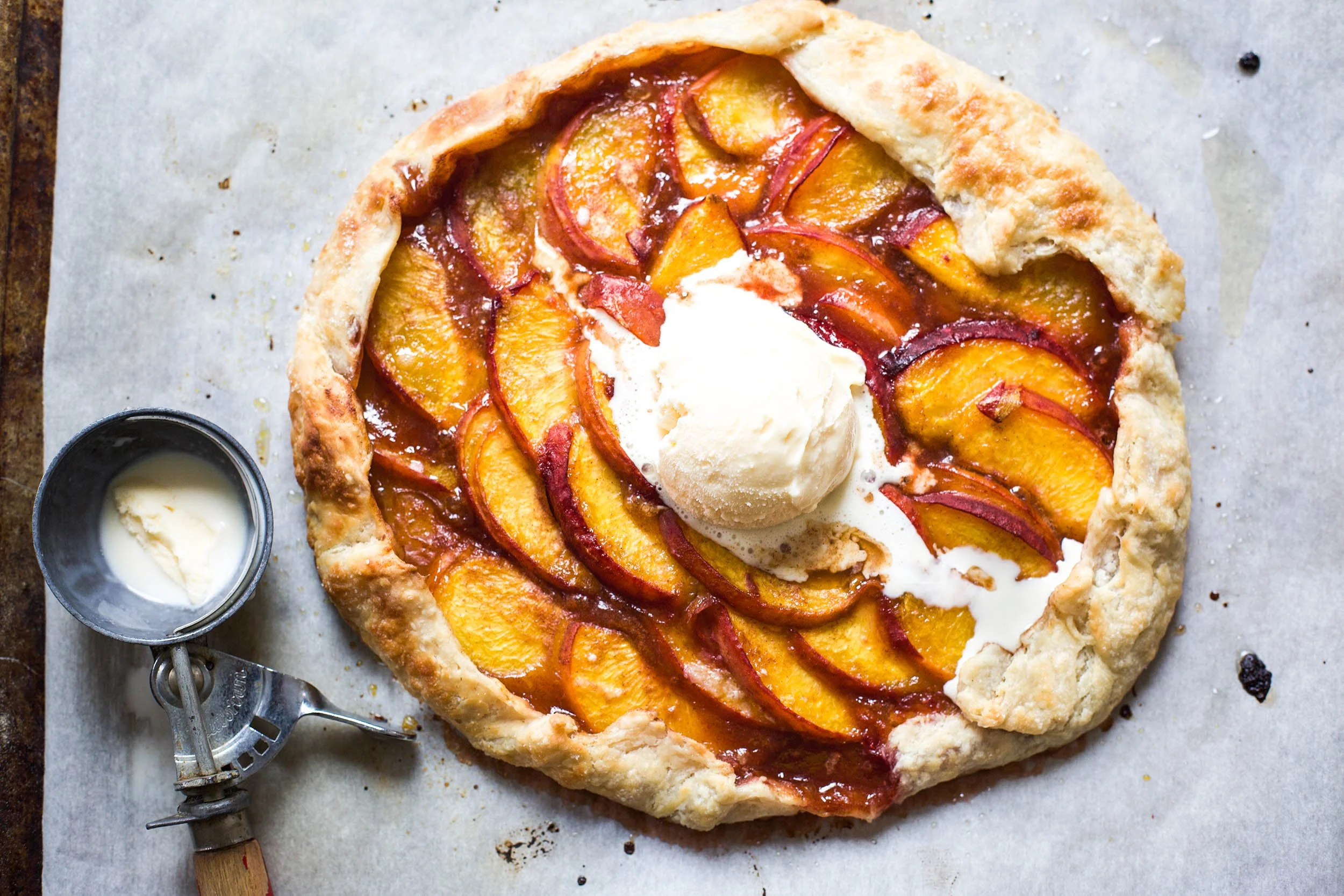 If you love pie, but are intimidated to make one at home, a galette is the way to go. Its a much simpler, rustic way to get your pie fix and honestly even an inexperienced baker can do it. Summertime is my favorite time of year to make a galette because summer fruit is my favorite. Peaches in particular are one of my favorite summer fruits to bake with and using them in this galette is the way to go. My recipe for this easy peach galette is one you are going to want to make for the rest of the summer.