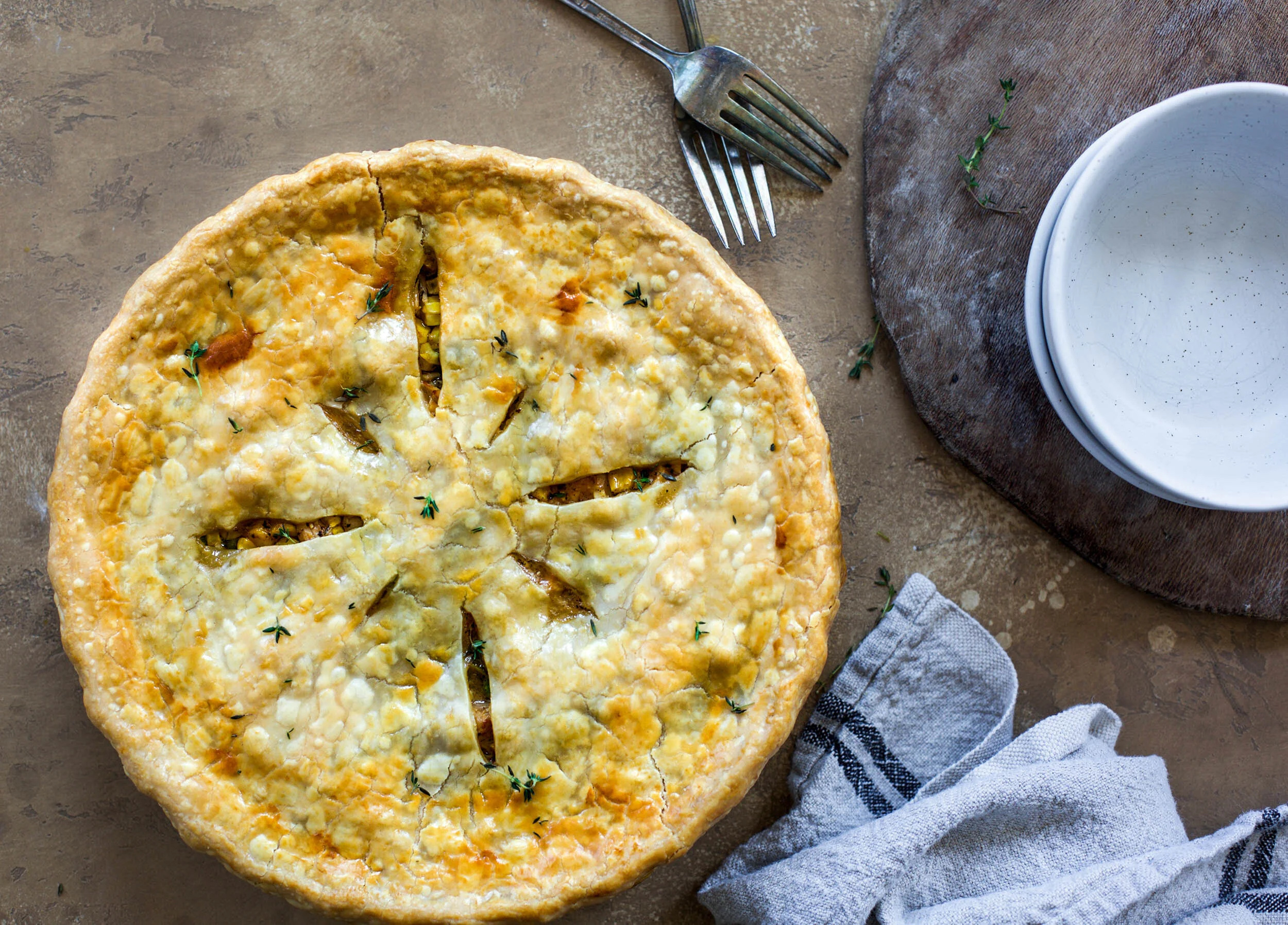 Bake for 50-60 minutes until top of the pie dough is golden.