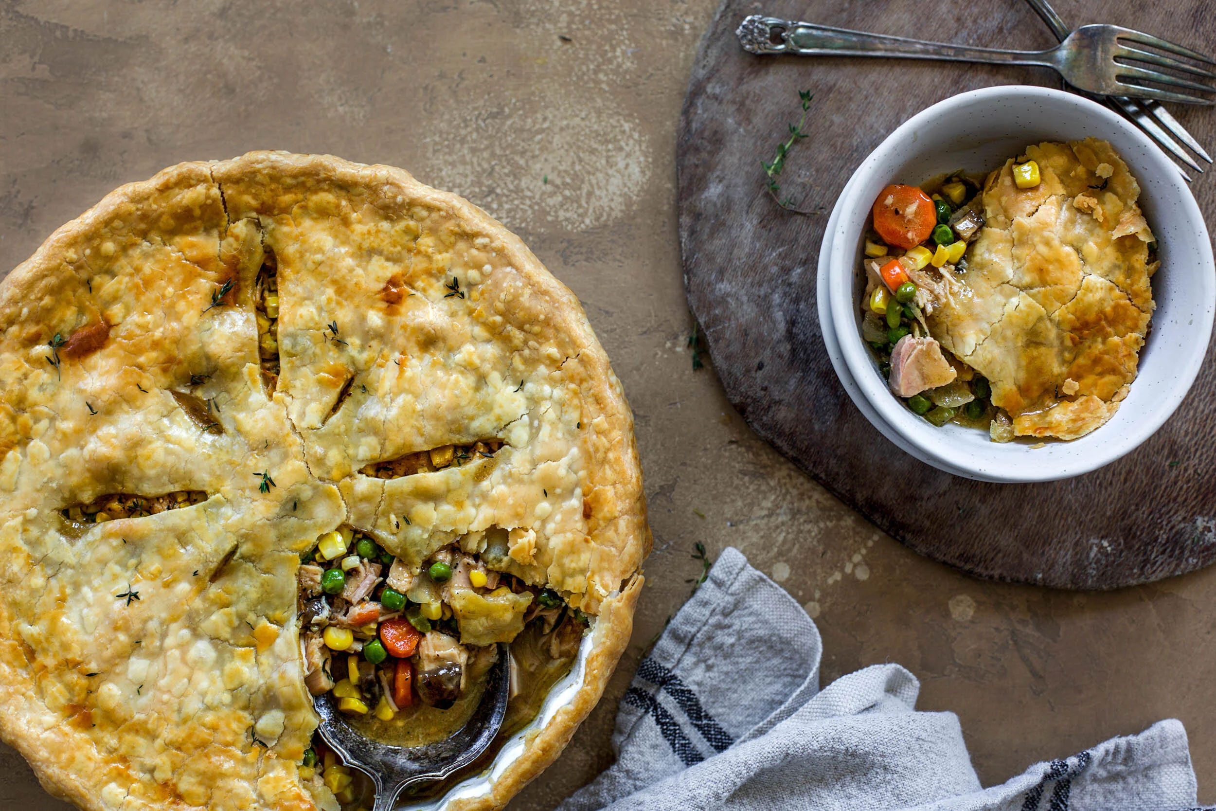 Pot pie is one of those classic dishes that take me back to my childhood. Back then it was usually a frozen pot pie and while there is nothing wrong with a little help from the freezer section, making one homemade is actually quite easy! I still take a little help from a store bought pie crust, because not everyone has time to make scratch pie dough, but the filling is homemade and full of goodness. This recipe is so tasty and with Thanksgiving upon us, pot pie is a great way to use up those turkey leftovers! This recipe for easy turkey pot pie is going to be a new cozy dinner staple throughout the holiday season and beyond.