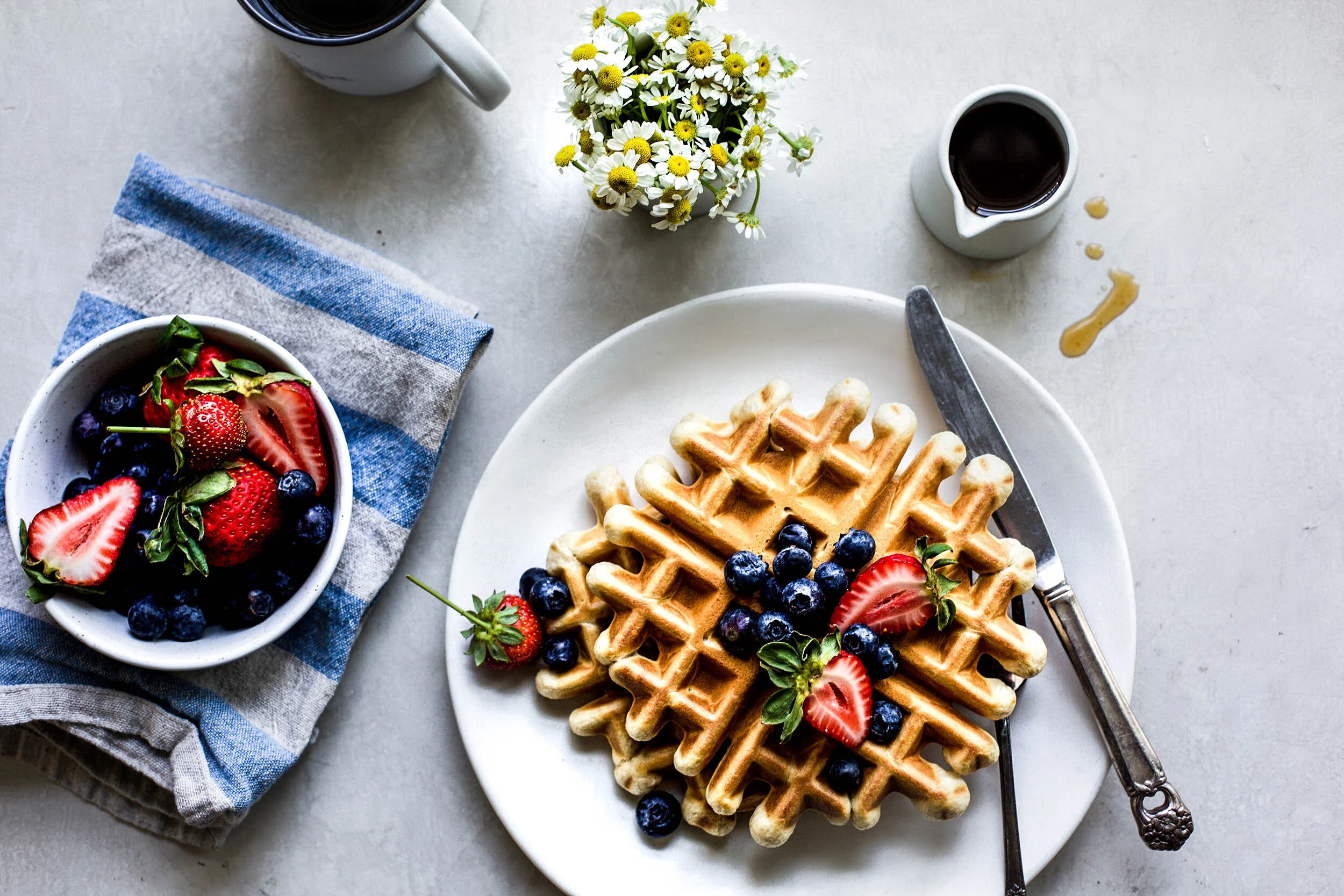 You can top them with berries, eat them plain, slather with butter (f you are my hubby), and of course drizzle with a good amount of maple syrup before you take a bite! You can’t beat homemade waffles on the weekend with some crispy bacon and fruit! Waffles have always been and always will be one of my favorite breakfasts recipes to add to any breakfast or brunch menu.
