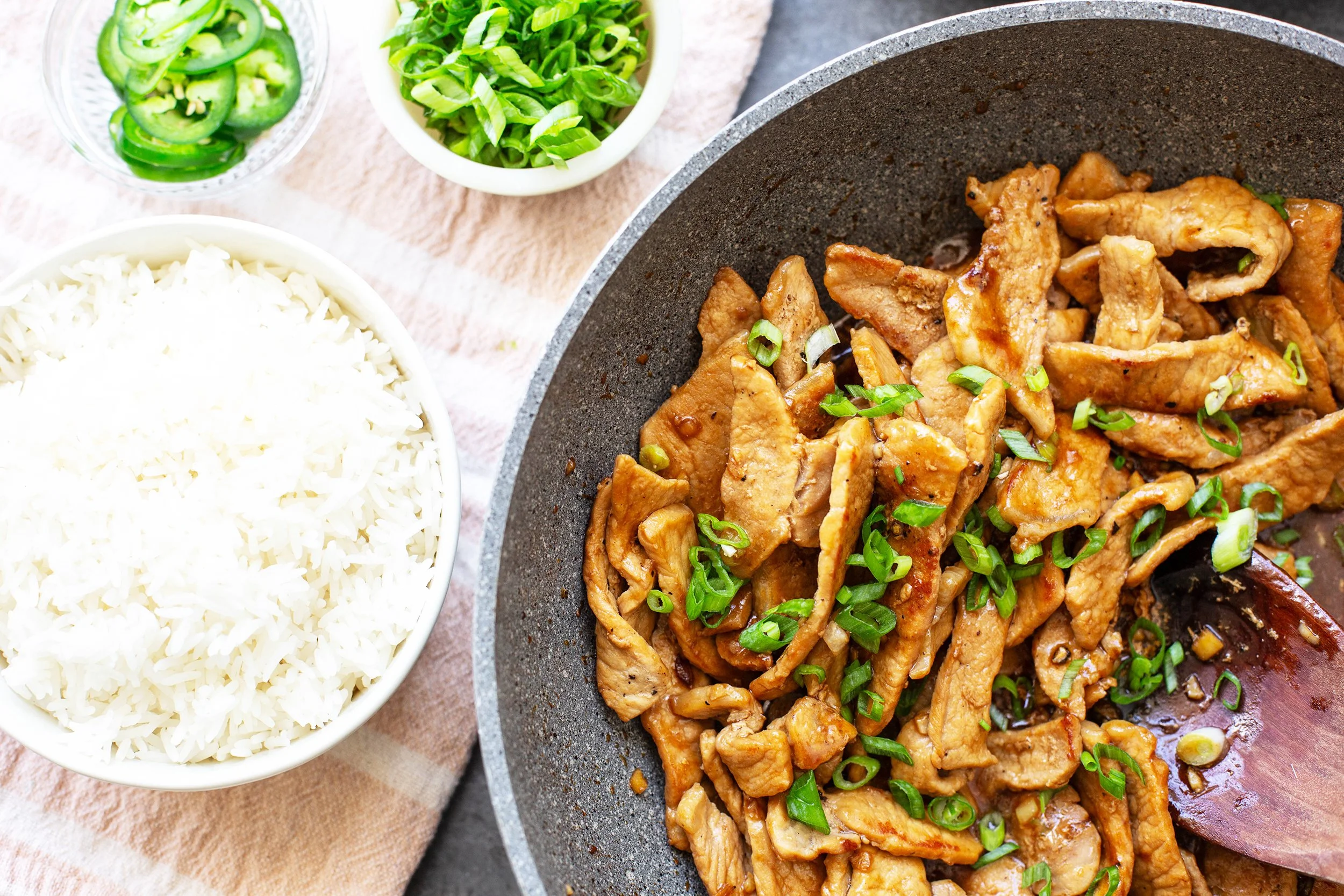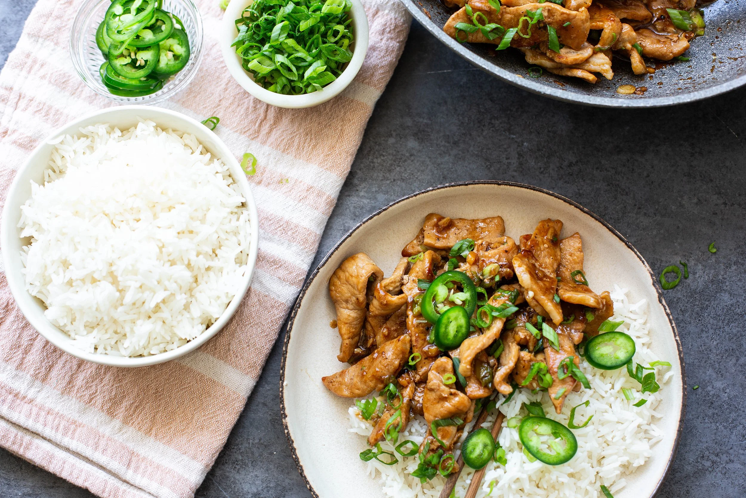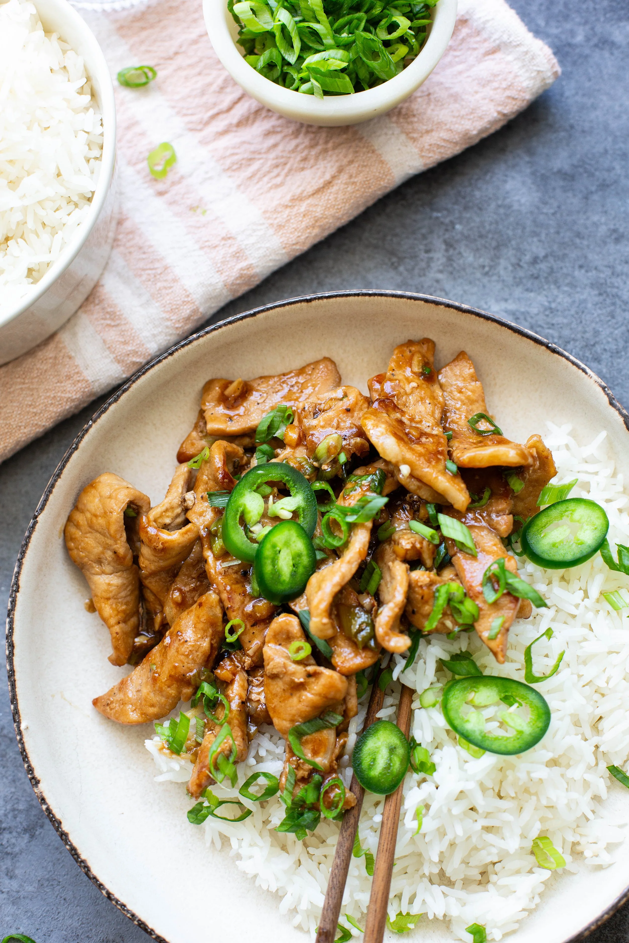 To prepare, the meat gets browned up in a wok and then I add a ton of ginger and garlic to the mix before adding a simple sauce that has the perfect balance of flavors. The meat simmers in the sauce just until thickened and then I add green onions and chiles to finish it off. I like to serve it over jasmine rice, but you can also add a side of vegetables as well.