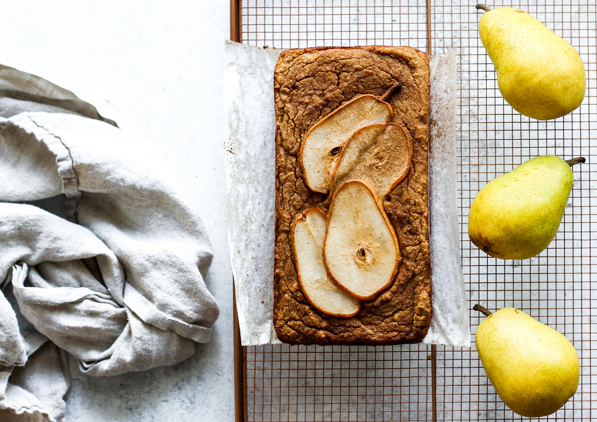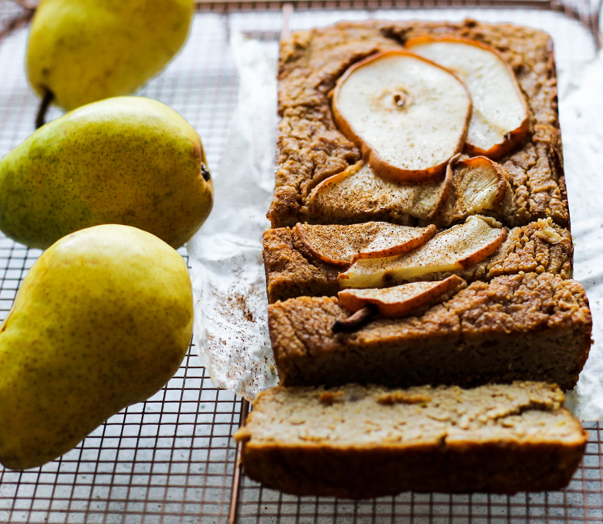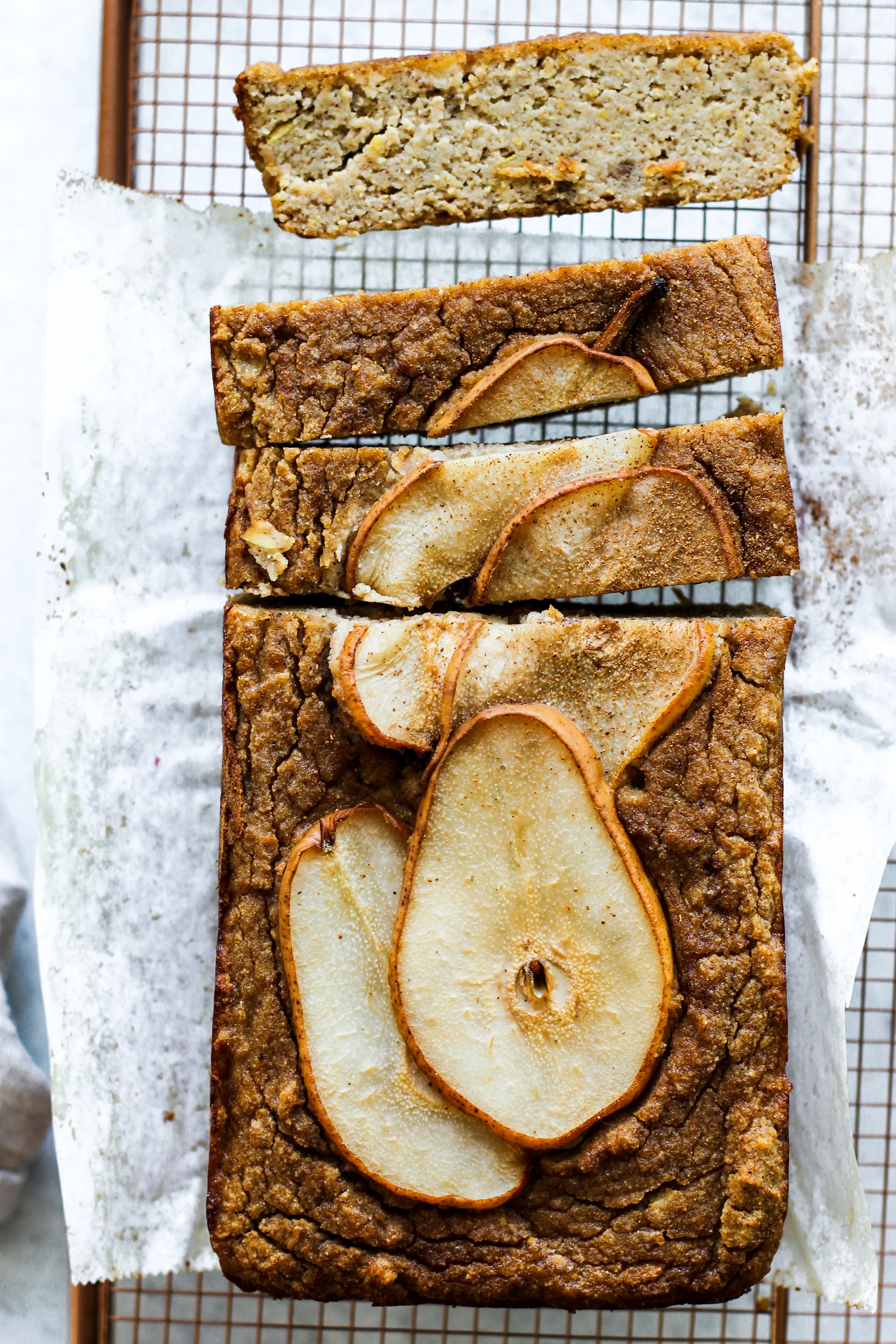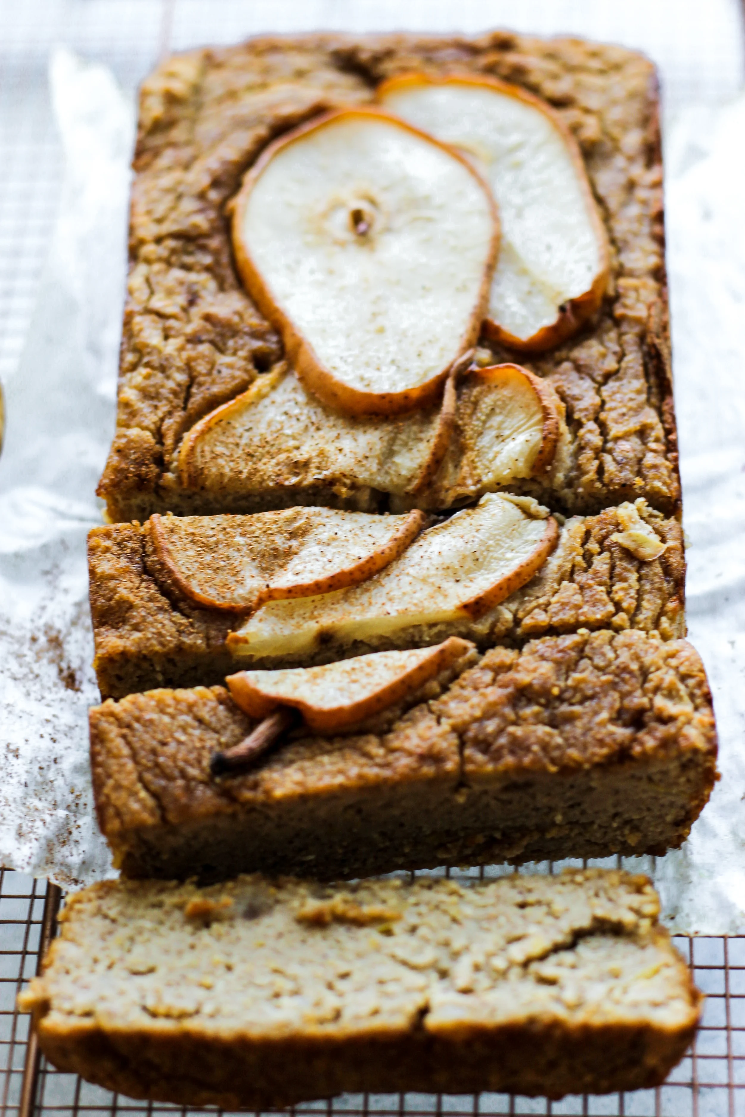 I have officially been bitten by the fall baking bug! Even though the weather here in Texas isn’t cooperating, I am carrying on with all of the fall recipes! Pears are one of those fall fruits that I feel like people forget about and honestly they are one of my favorites at this time of year! I obviously love them as a healthy snack all by themselves, but they are also fantastic to use in savory dishes and baked goods alike! My gluten free spiced vanilla pear bread is one of those fall recipes that you are going to want to make all season long!