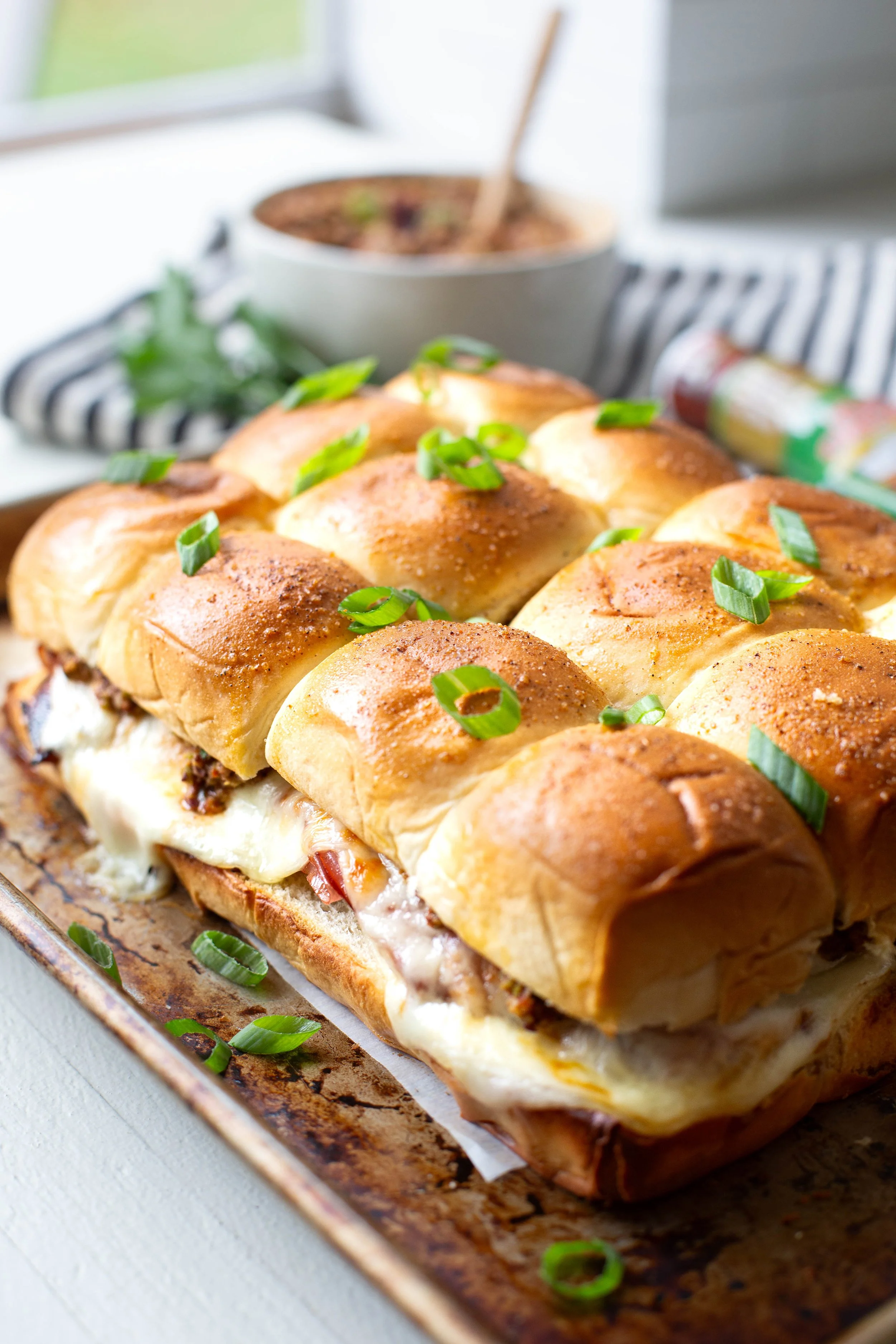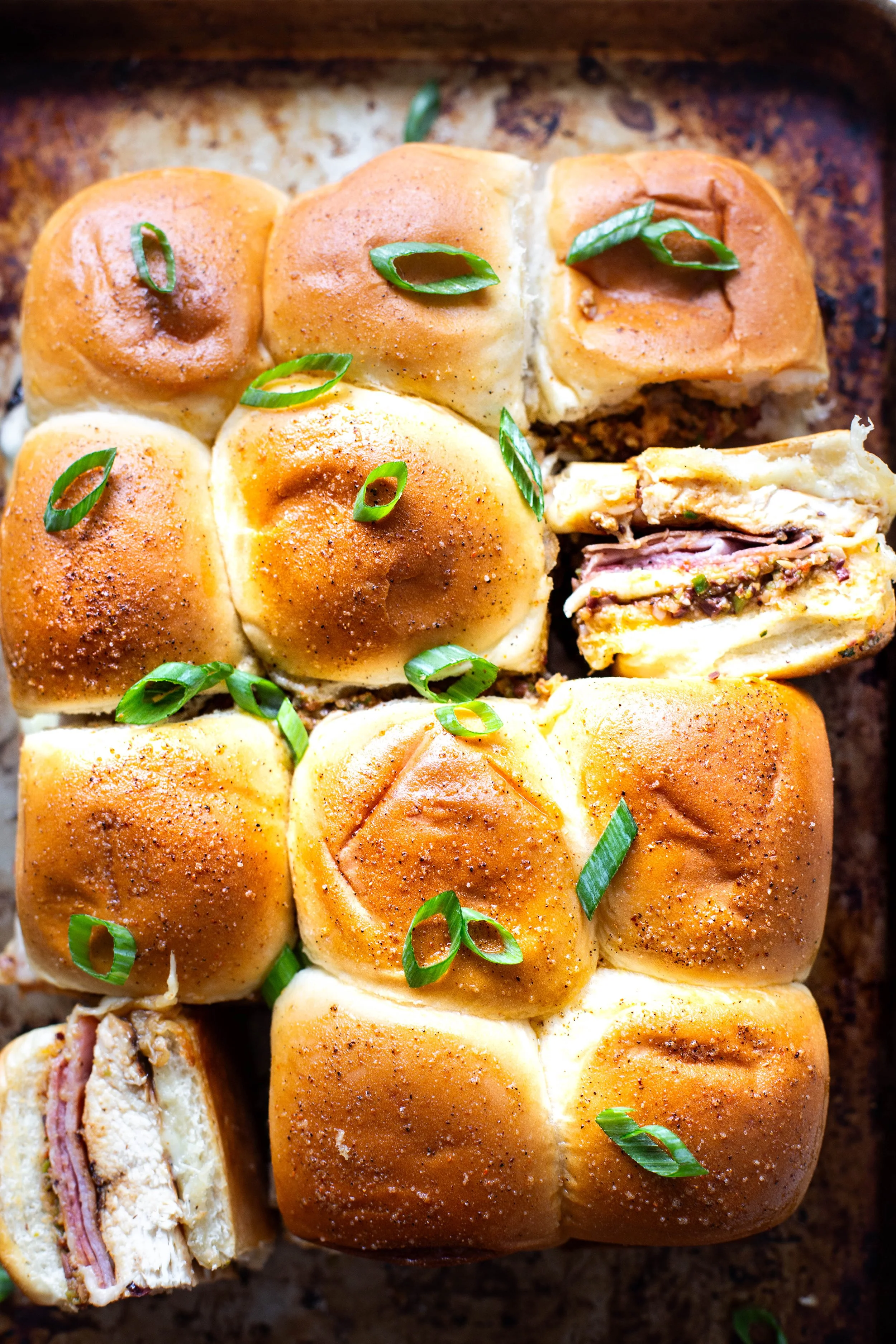Place the tops onto the bottom half of the rolls with melted cheese and spread and bake for another 10-15 minutes until golden.