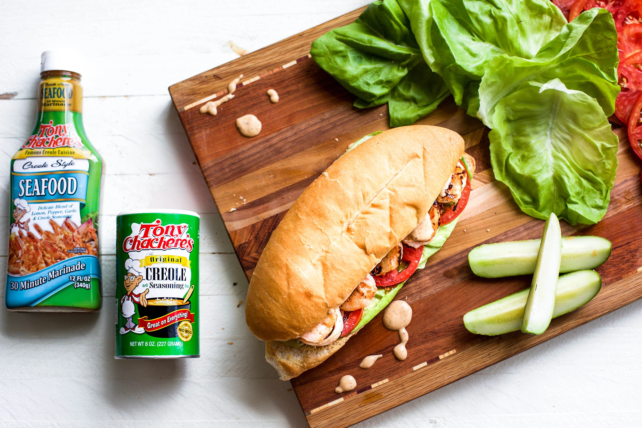 I may be from Tennessee, but I married into a Cajun family and even though it’s not in my blood, I have grown to have an intense love for Cajun culture and cuisine! So much so, that I wrote my first cookbook with all of my favorite Cajun recipes that are near and dear to my heart! (I did live in Louisiana for ten years after all!) One of my favorite all time classic Louisiana dishes happens to be a po’ boy! I love all of the varieties that are available, but nothing beats a shrimp po’ boy in my opinion! That’s why I partnered with Tony Chachere’s to bring you the perfect summer grilling recipe! My Grilled Shrimp Po’ Boys are a lighter take on the classic and are easy to whip up any night of the week!