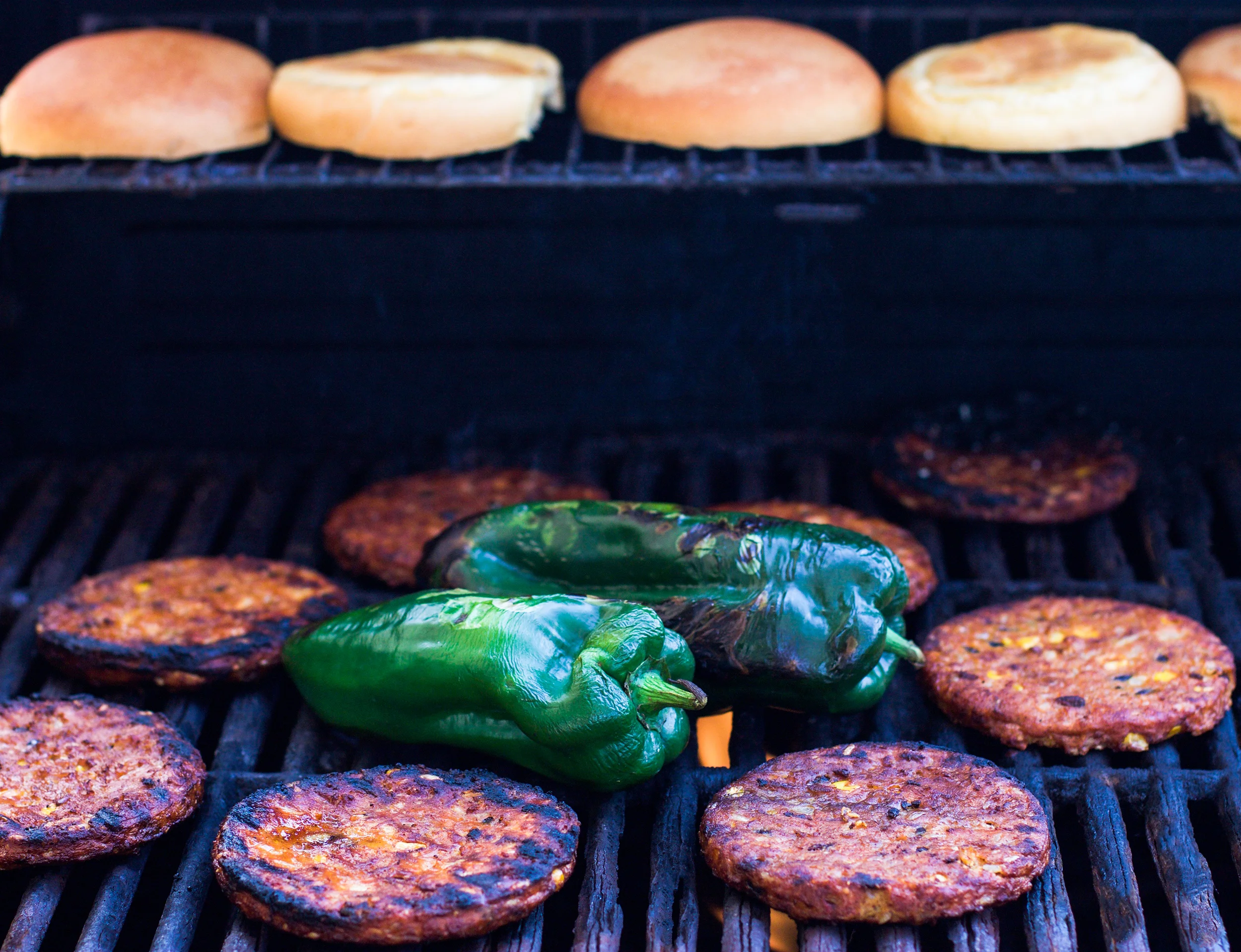 At the same time, place poblanos onto the grill over direct flame.