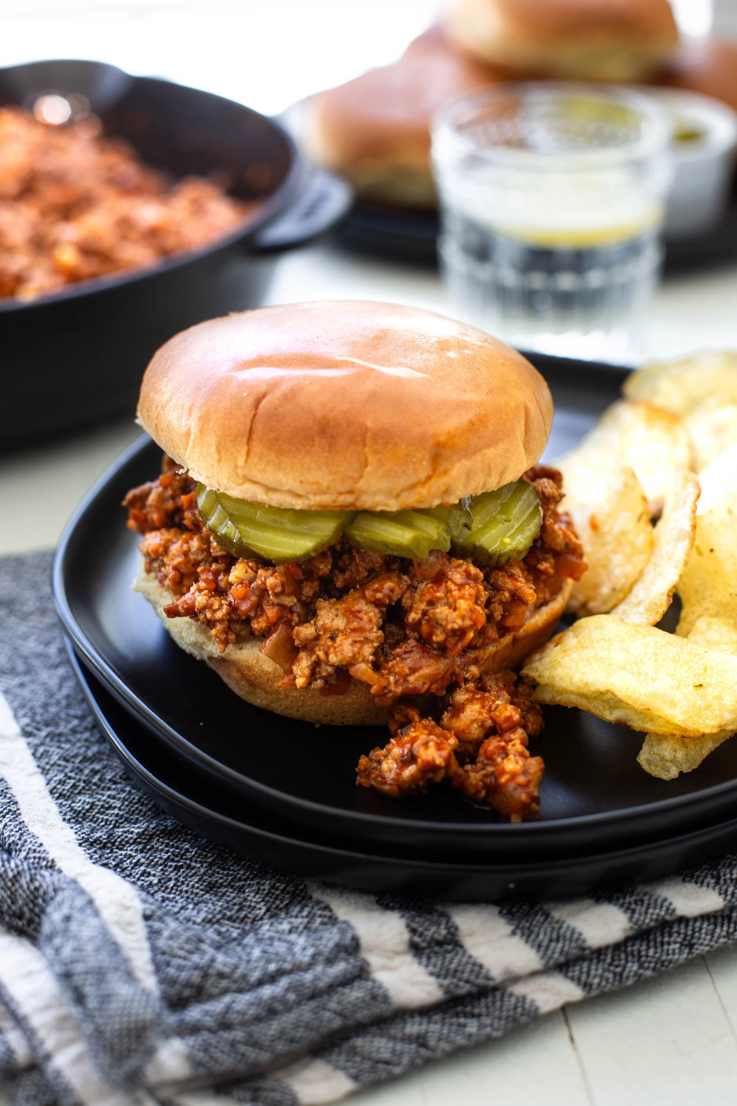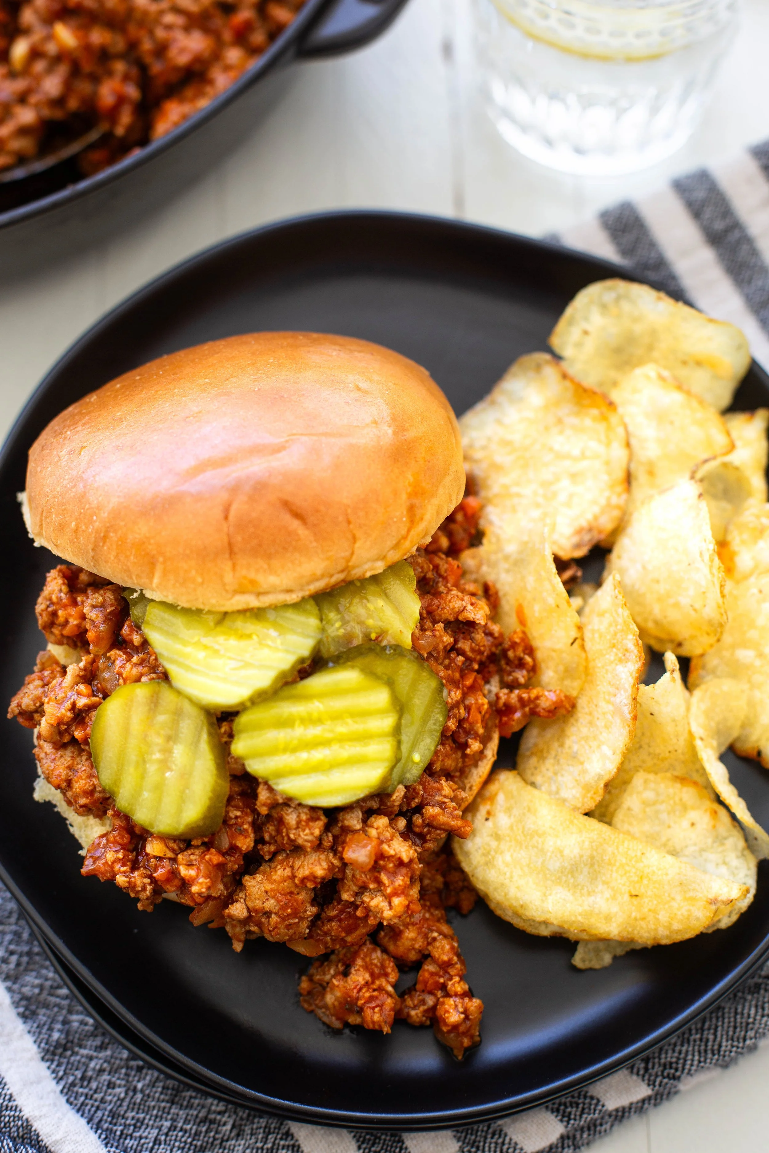 Serve the sloppy joe mixture in a baked potato or sweet potato instead of a bun if you prefer.