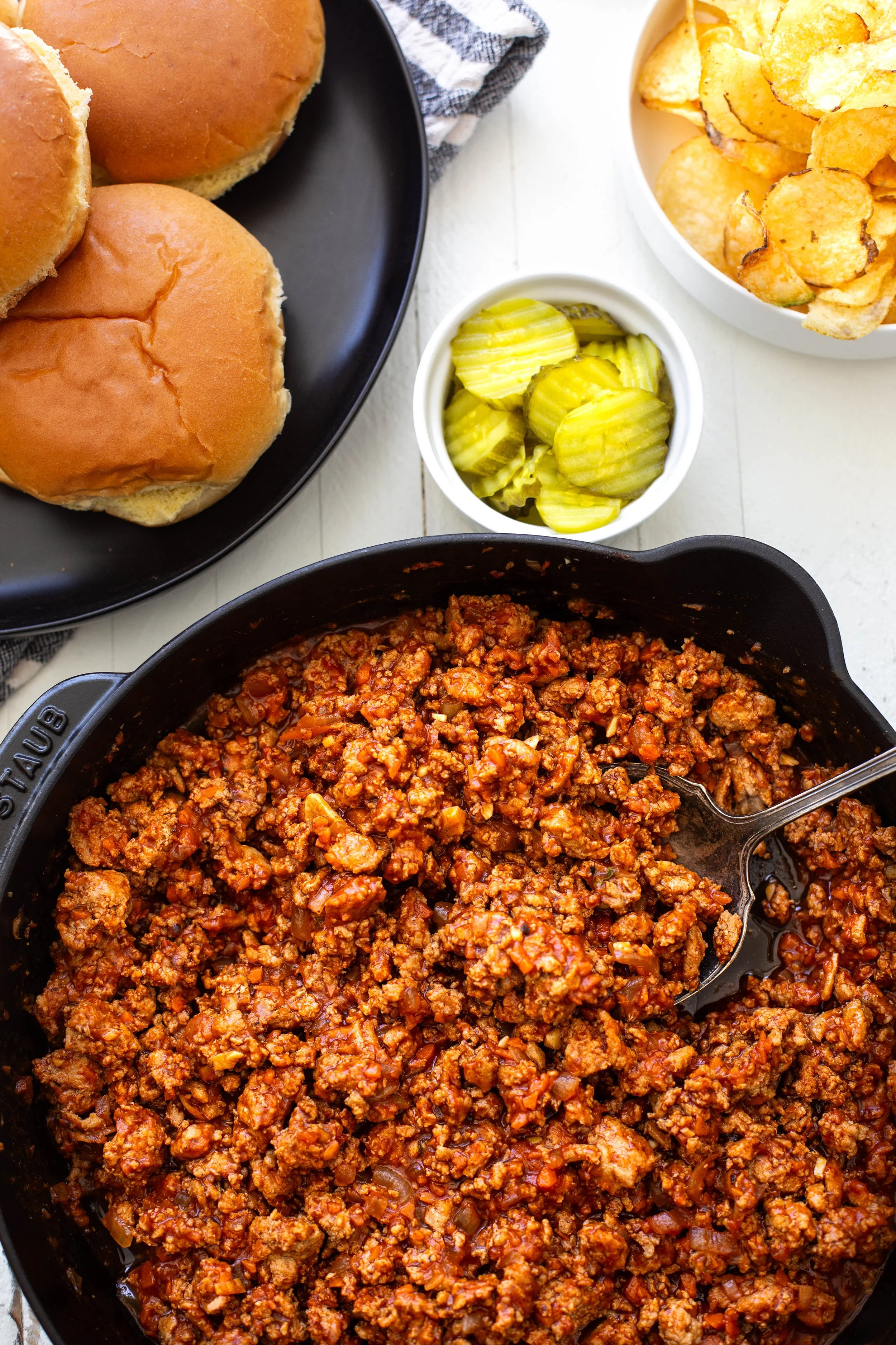 Buns and pickles to serve.