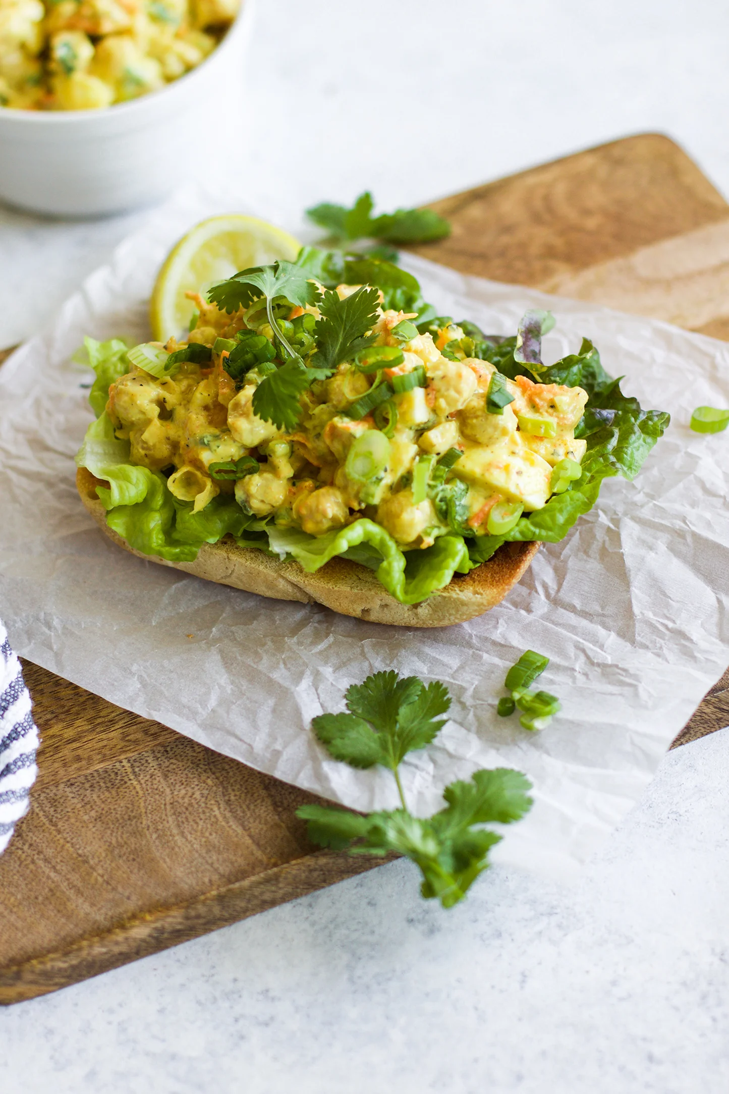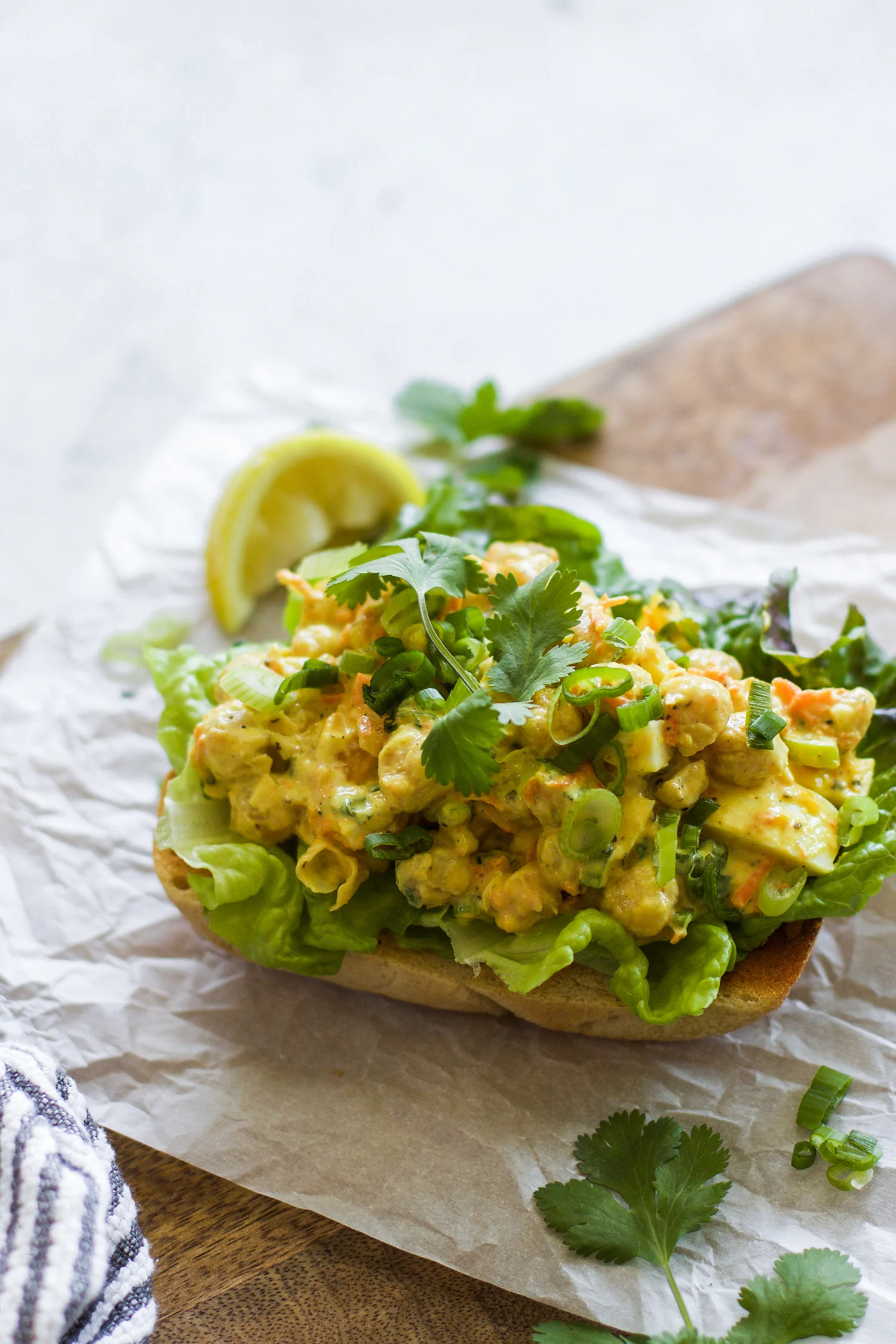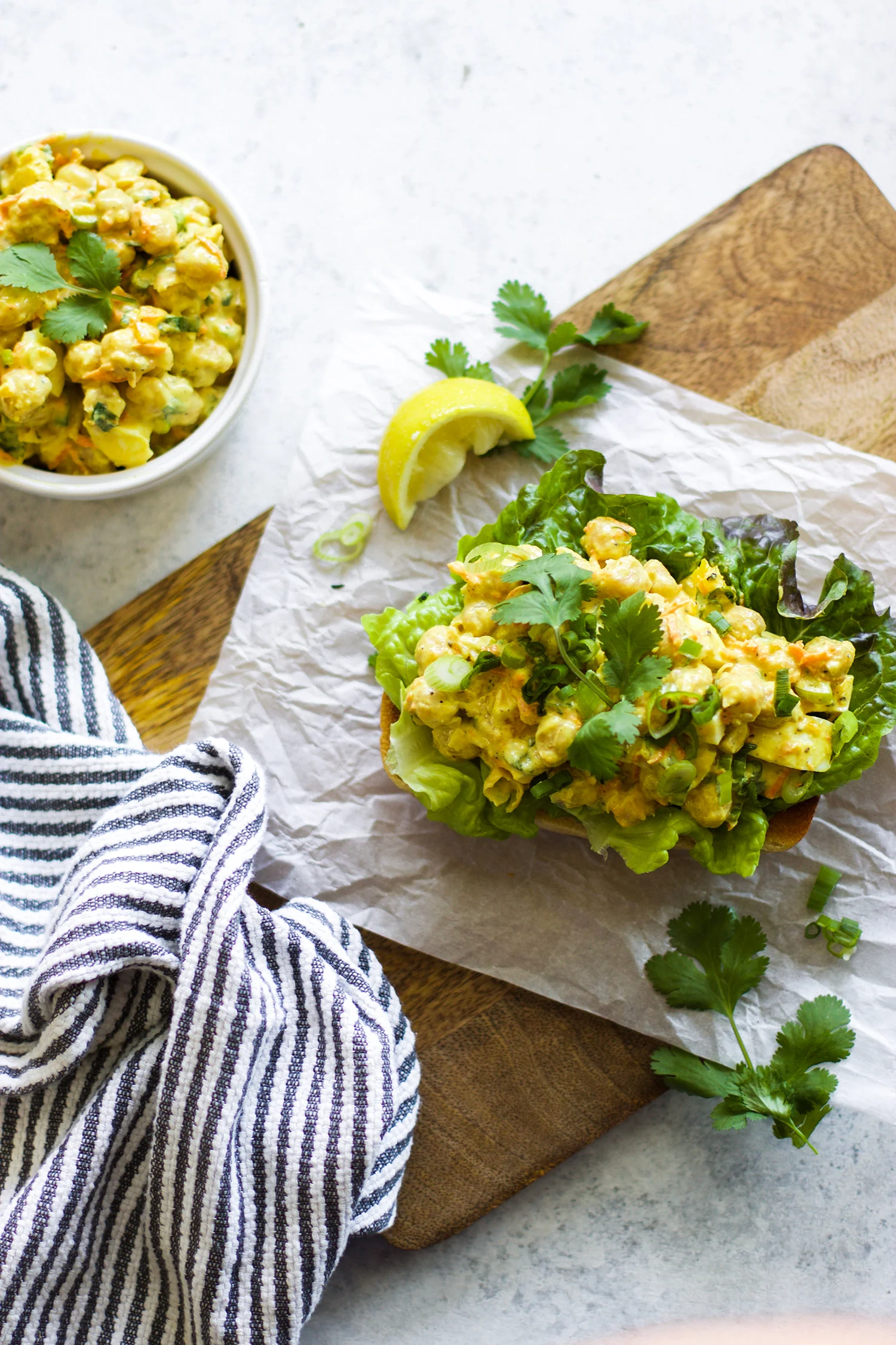 If you are like me and need to at least get your lunches prepped to set yourself up for success, then do yourself a favor and make this curried chickpea salad ASAP! It's so delicious!