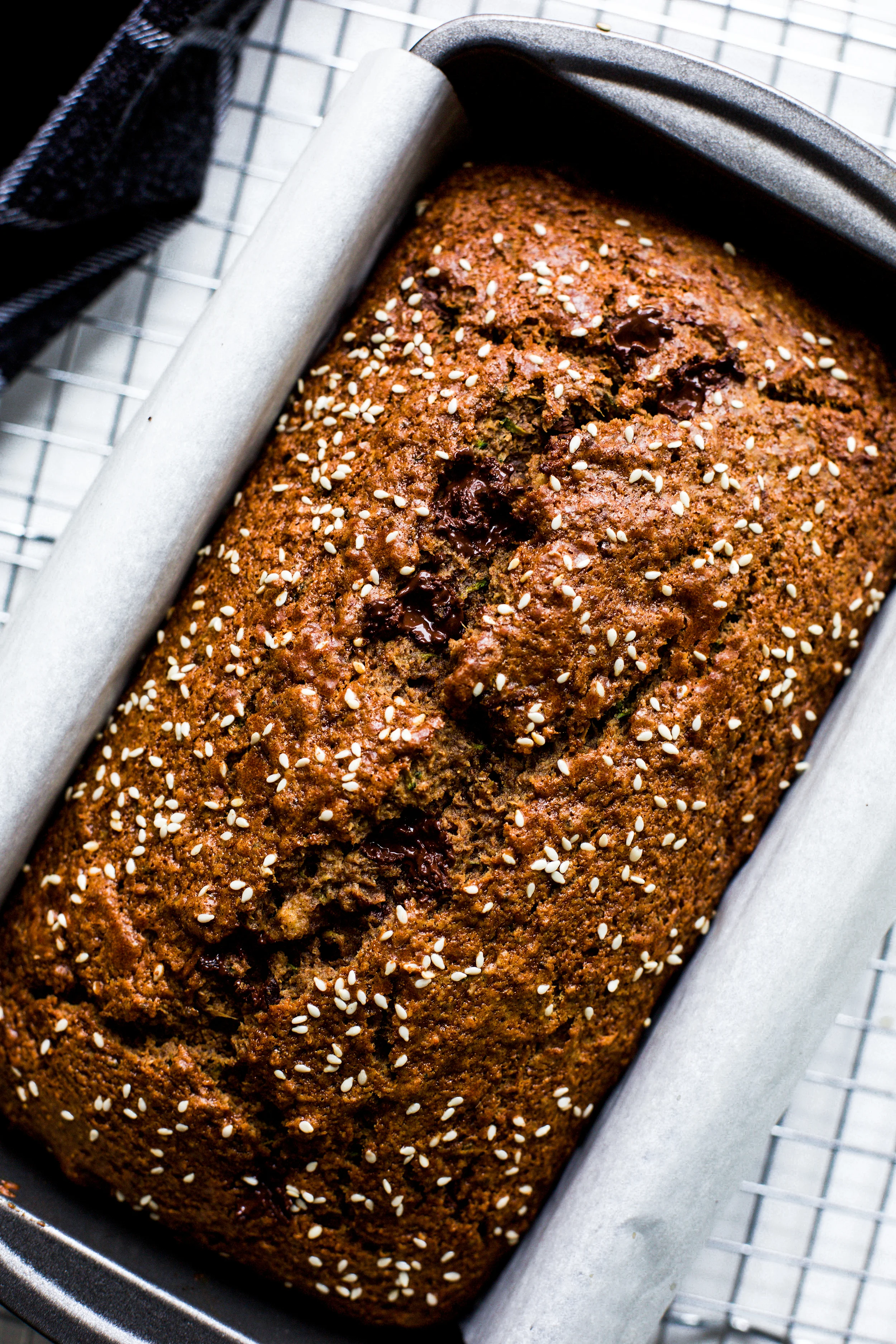 Breakfast: Zucchini Tahini Bread + Yogurt and Fruit— You can also bake this bread into muffins for lunch boxes and more!