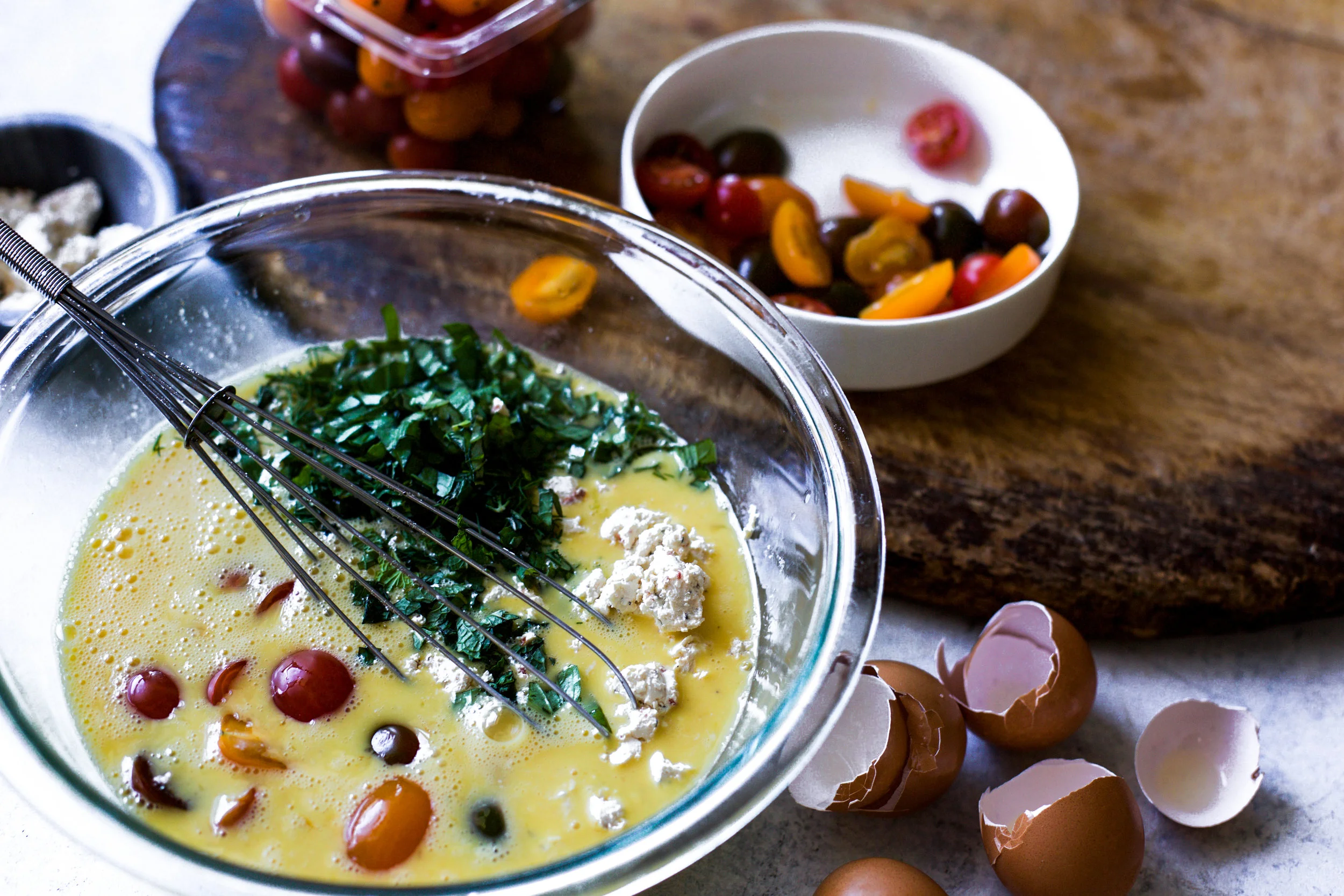 Breakfast: Make Ahead Herby Tomato and Goat Cheese Egg Muffins— I love making these egg muffins at the beginning of the week with whatever herbs I have on hand to eat for an easy ready to go breakfast or lunch!
