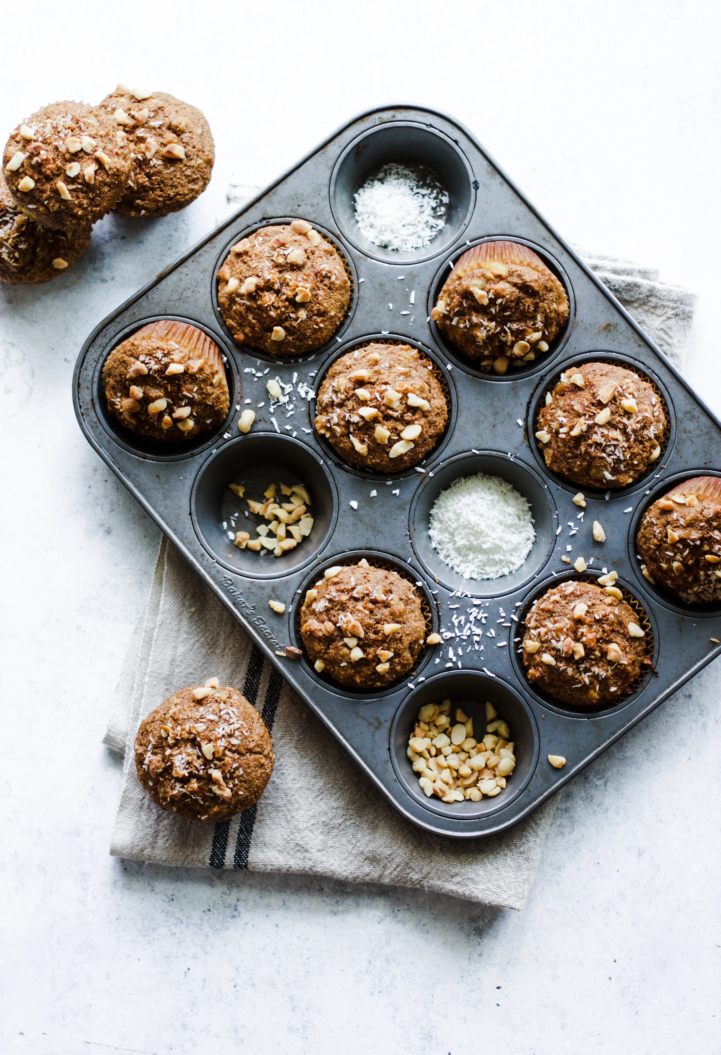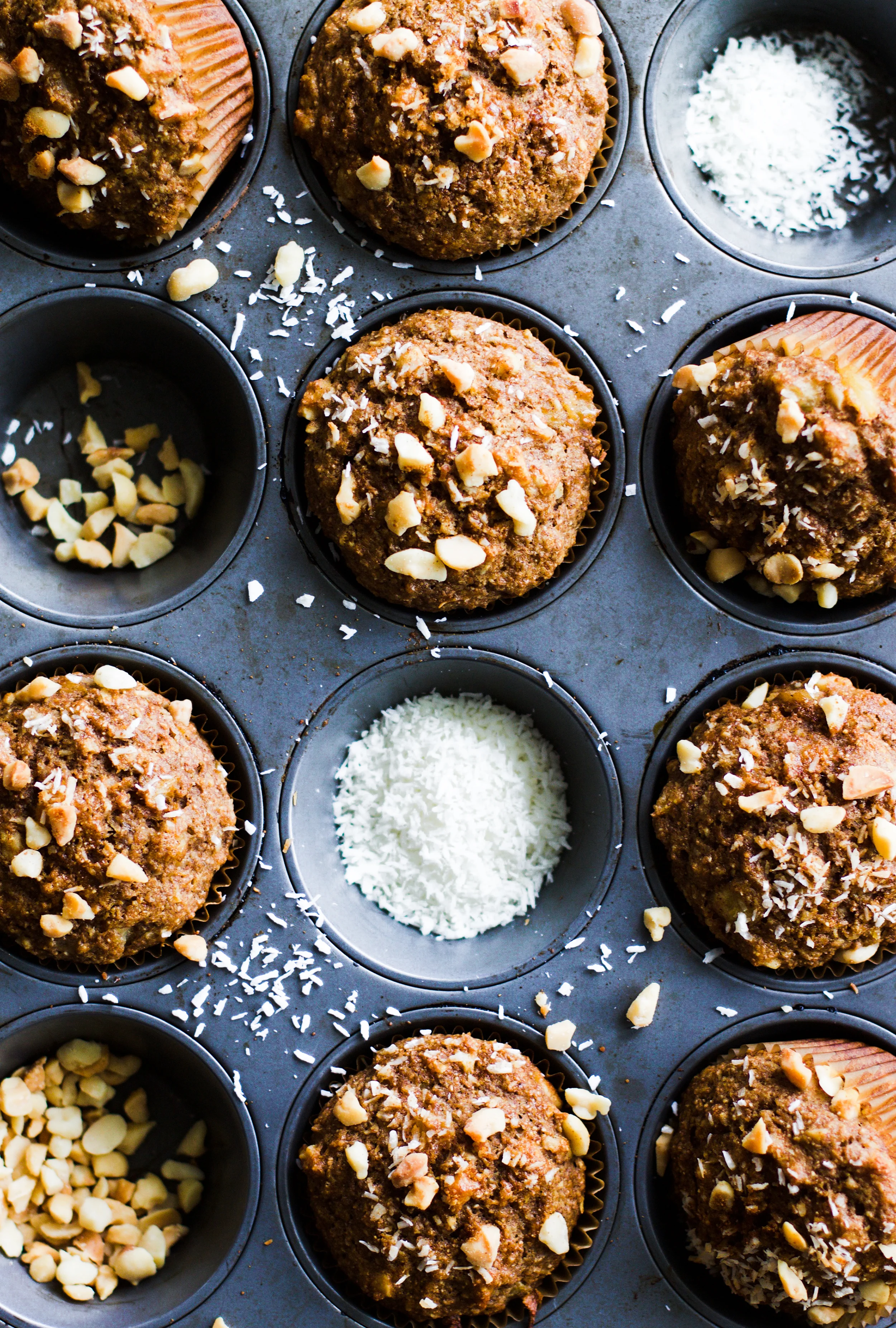 Since coming home from Hawaii, I can't help but remember some of my favorite flavors that I experienced on the island. One of the reasons that I love traveling so much is because of the inspiration I always get from the food that I eat! We ate breakfast at a little spot on the water one morning and before our main entrees came, they served us macadamia nut banana muffins that were out of this world! If you didn't already know, macadamia nuts are everywhere in Hawaii and so they use them in tons of dishes ranging from salads to baked goods! I gave the muffin a healthy spin and added a little coconut for even more of a tropical feel! My healthy macadamia and coconut banana muffins are so good AND so good for you, that they will be your new favorite go-to breakfast!