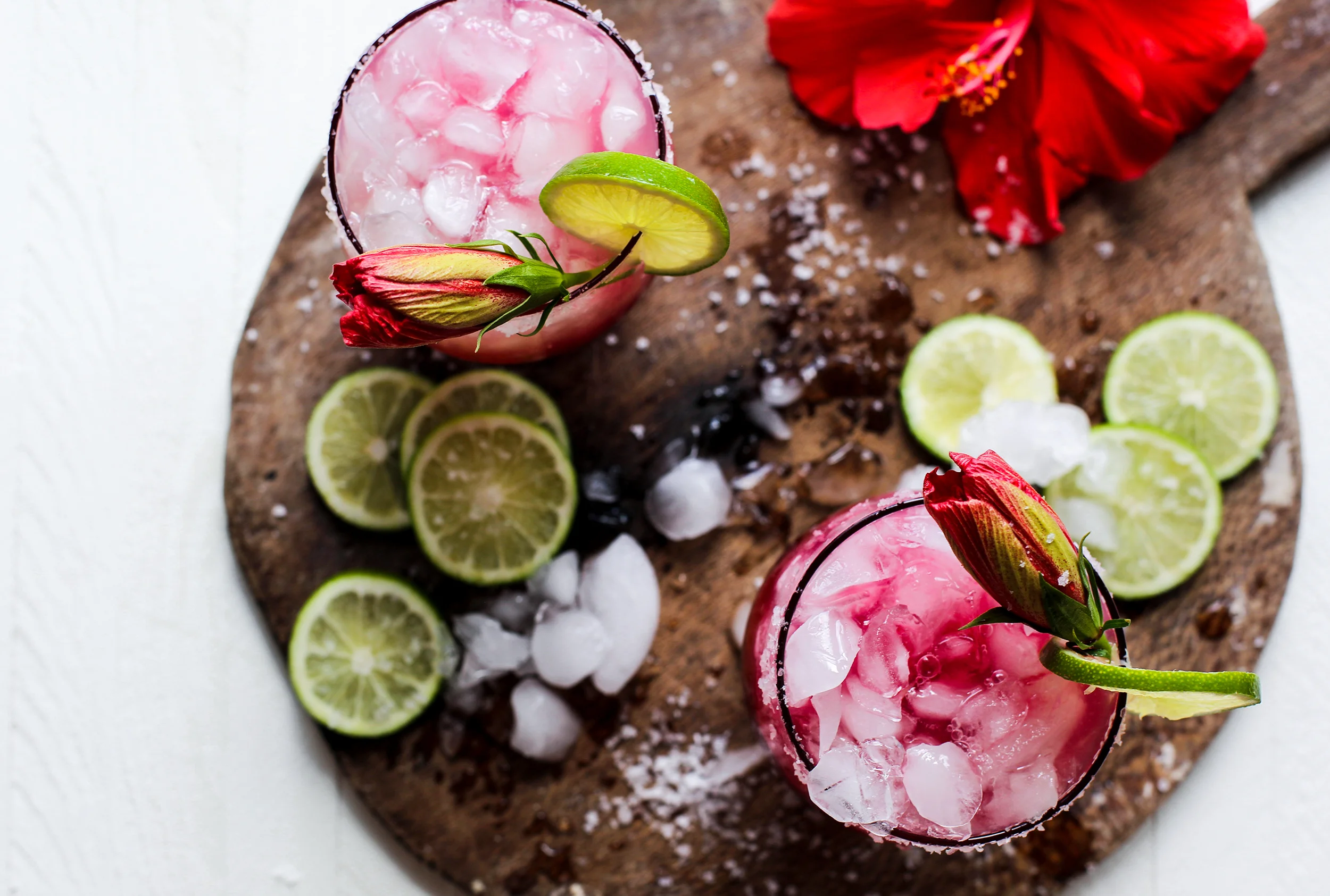 Have you ever made anything with dried hibiscus flowers? More than likely you have had a hibiscus tea or at least seen it, but I am here you tell you that you need to make a cocktail with it too! This margarita is the perfect balance of sweet, floral, and tart and couldn’t be any more refreshing! It is going to make your Cinco de Mayo celebrations complete, not to mention it’s an absolute gorgeous color thanks to those little dried flowers!