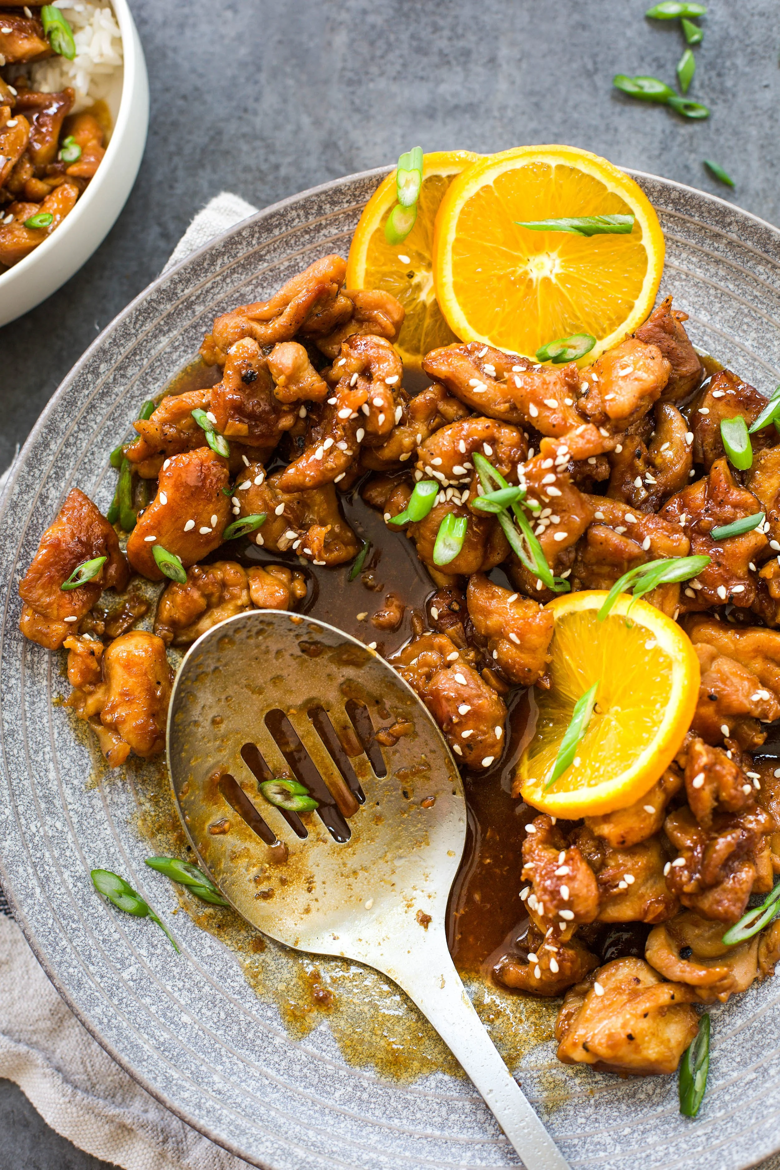 Traditionally orange chicken is breaded and then fried before tossing in that signature sticky orange sauce. And while that method is delicious for obvious reasons, I decided to make this dish at home without any breading or frying involved. This way the dish becomes lighter and much easier to prepare. I also make the sauce from scratch using all real ingredients that you can feel good about. The flavor is so fresh and equally as satisfying as when you get takeout.