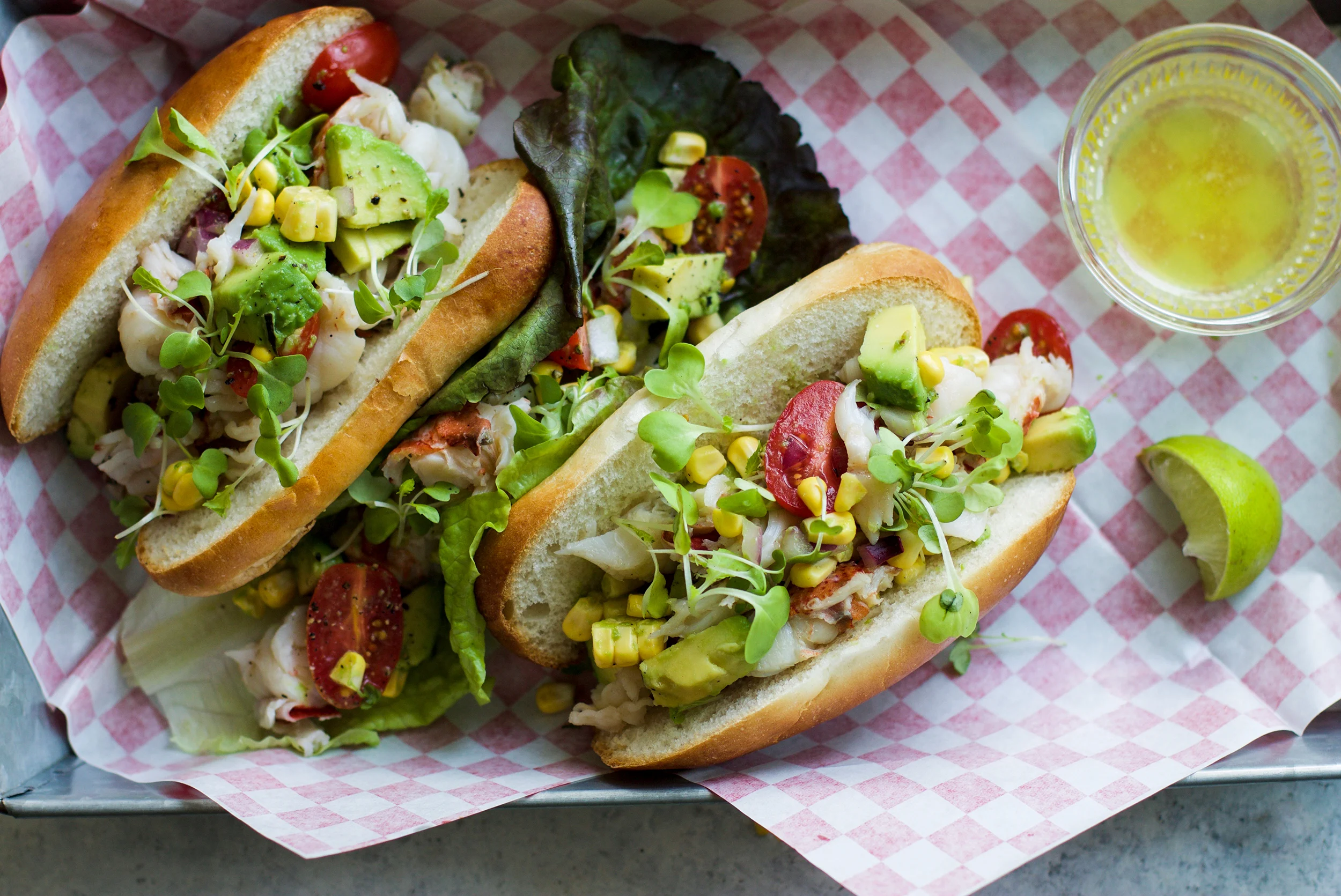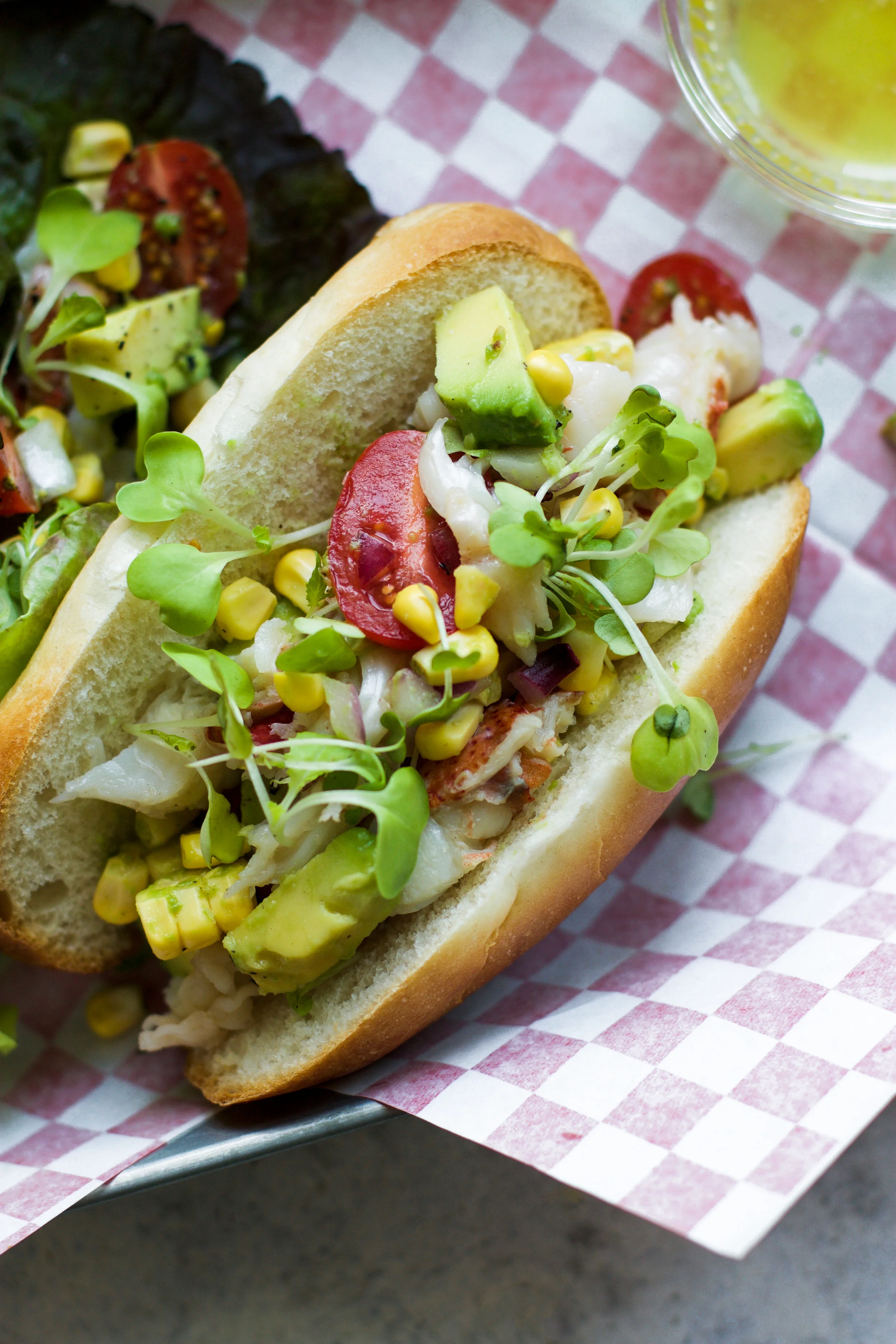 Nothing makes me more proud and happy than when my toddler inhales a bowl of food that is really good for him! I made these lobster rolls yesterday and while Parks ate his deconstructed style with the bun on the side, he ate every bite of the filling and practically shoveled it in his mouth. That's how good these are guys! If you have never had a lobster roll I think you are going to love them! I will tell you that my hubby and I fell in love with lobster rolls while we were in Maine last year, and ever since coming back I kept saying I wanted to make a healthier version at home! I finally did it and put my own twist on them and the result was incredible! My lobster rolls with avocado, corn, and tomato salad are the perfect summer dinner for any night of the week!