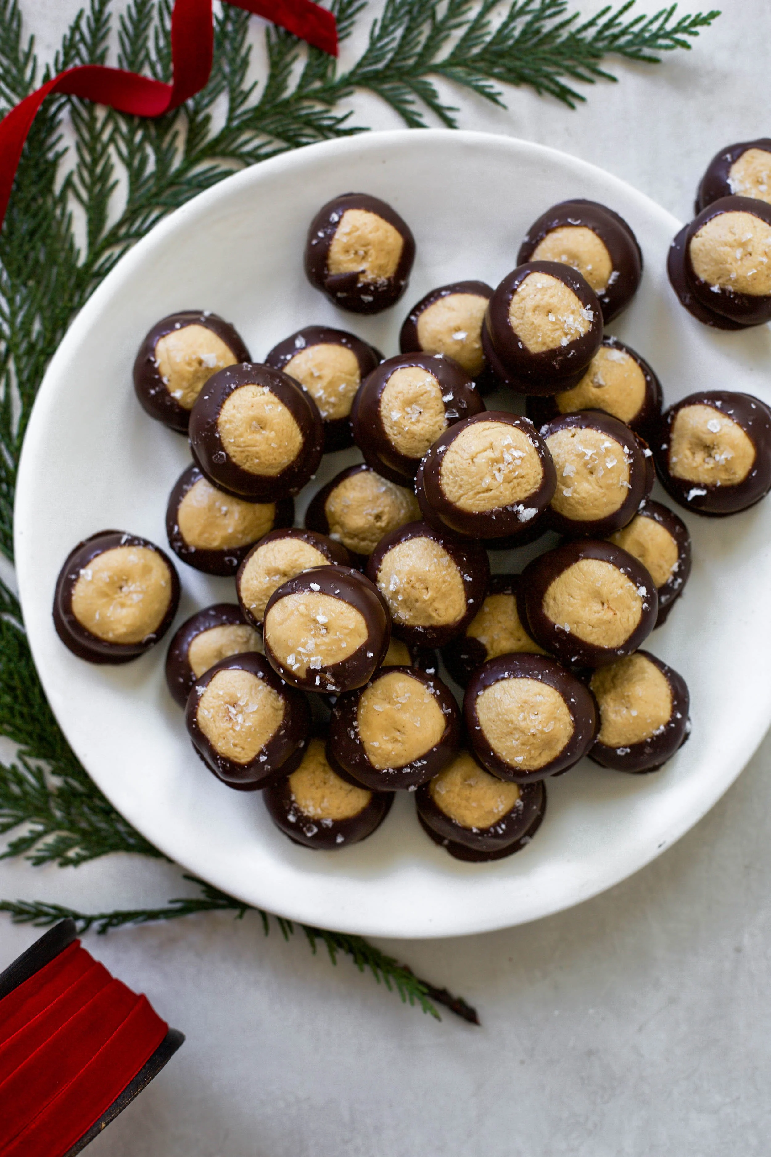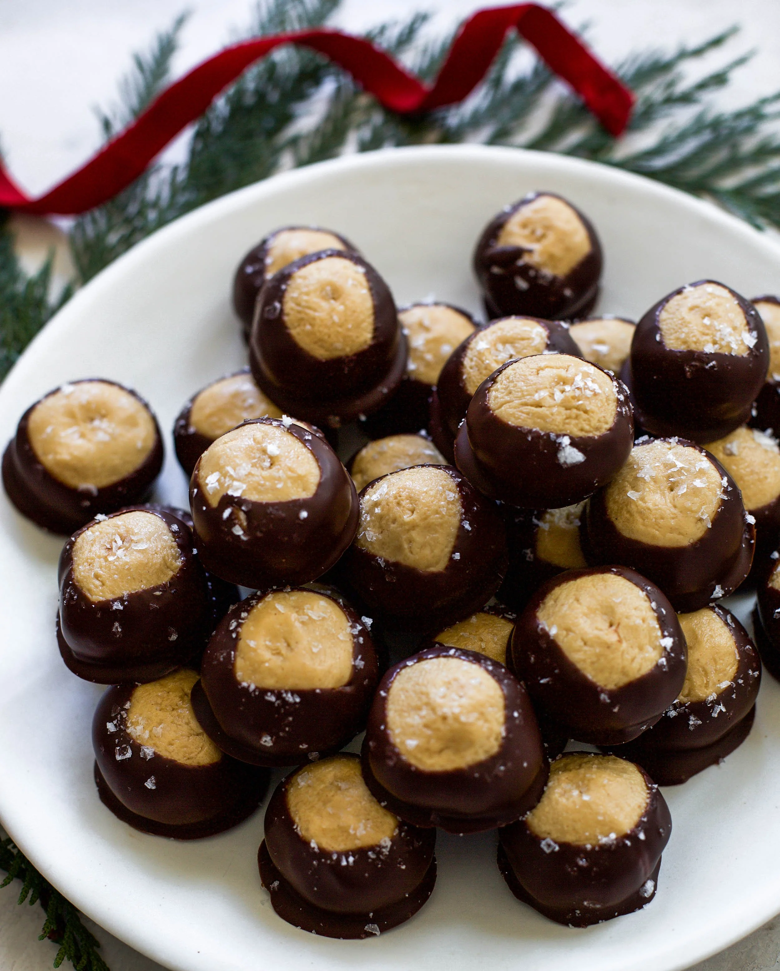 One of my favorite gift ideas to give during the holiday season is homemade goodies. There are so many options of sweet treats to make, but buckeyes are a classic homemade sweet treat that my mom has made during the holidays for as long as I can remember. I added my own twist on this recipe by adding a little flaky salt on top to balance out the richness of the buckeyes to make them even more irresistible. This recipe for salted buckeyes is one that you are going to want to make every single year.
