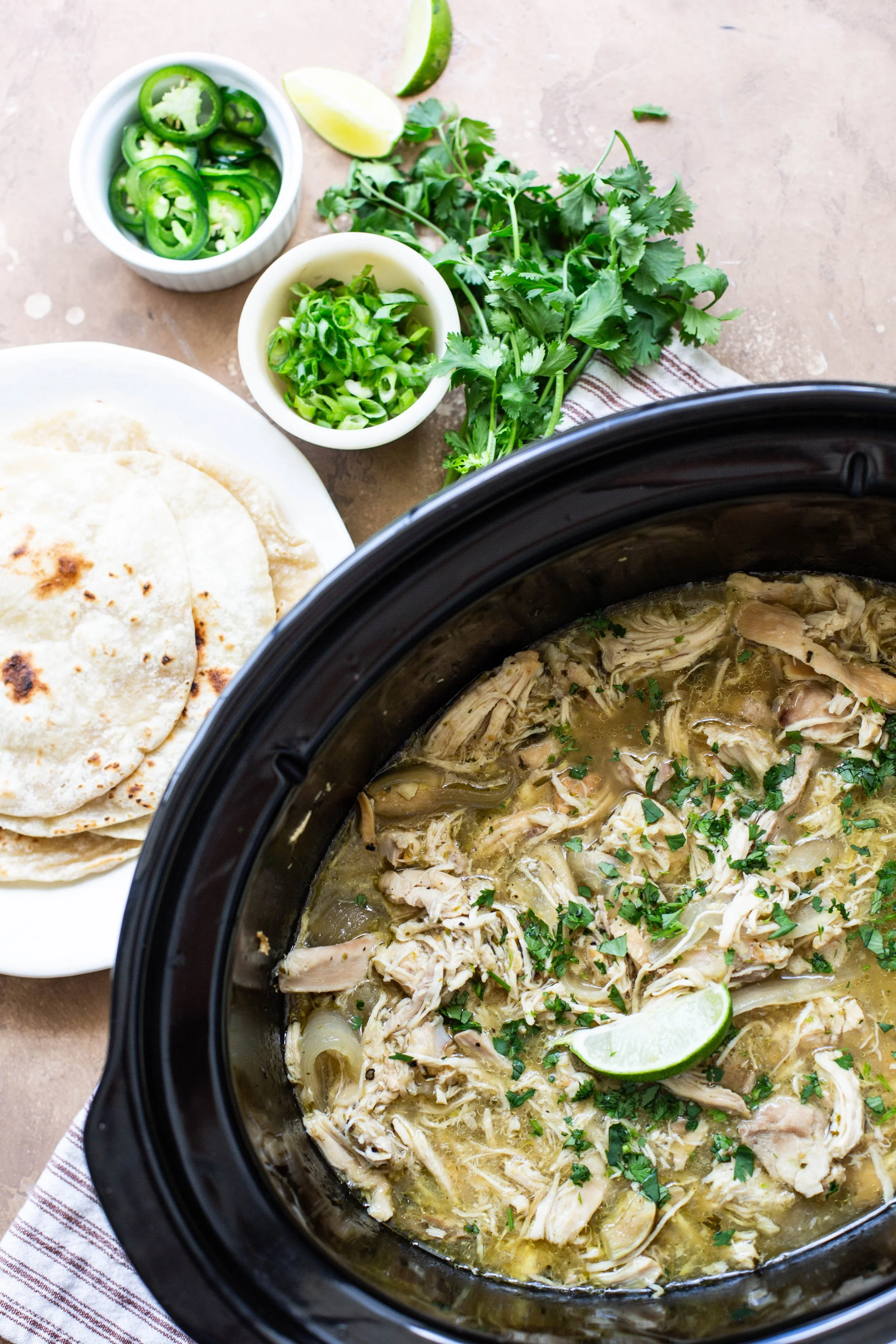 How good does this shortcut slow cooker salsa verde chicken look? This is a recipe that will be a lifesaver on busy weeknights.
