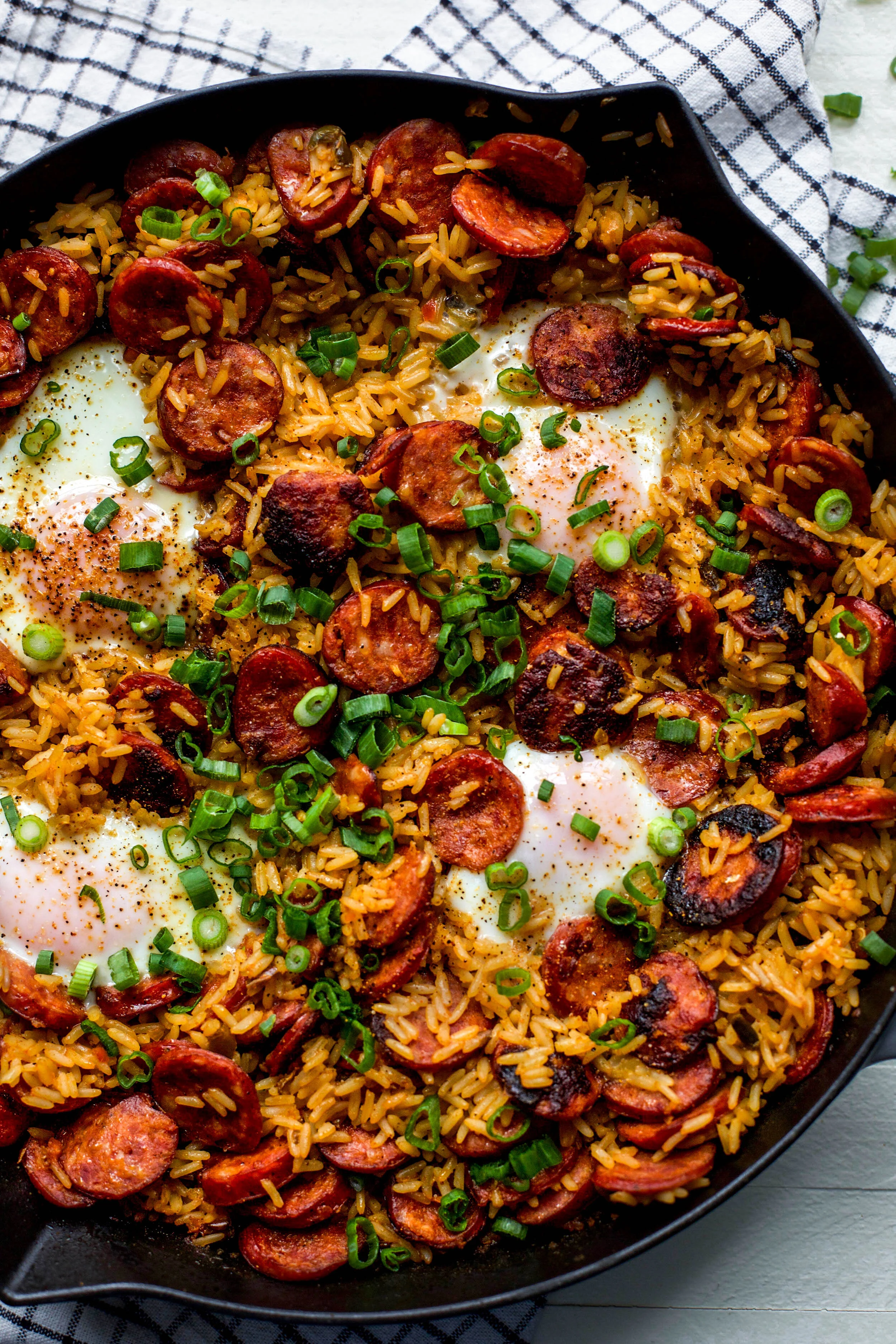 This recipe could not be any simpler to make and even though it’s technically a breakfast recipe, it would actually be delicious any time of the day. I would be all about this dish for dinner as well. You could also sub the andouille sausage for whatever sausage your prefer, or even add in some other protein if desired. Any way you cook it up, it will be amazing. I know that you are going to love making this recipe over and over again just as much as I do.