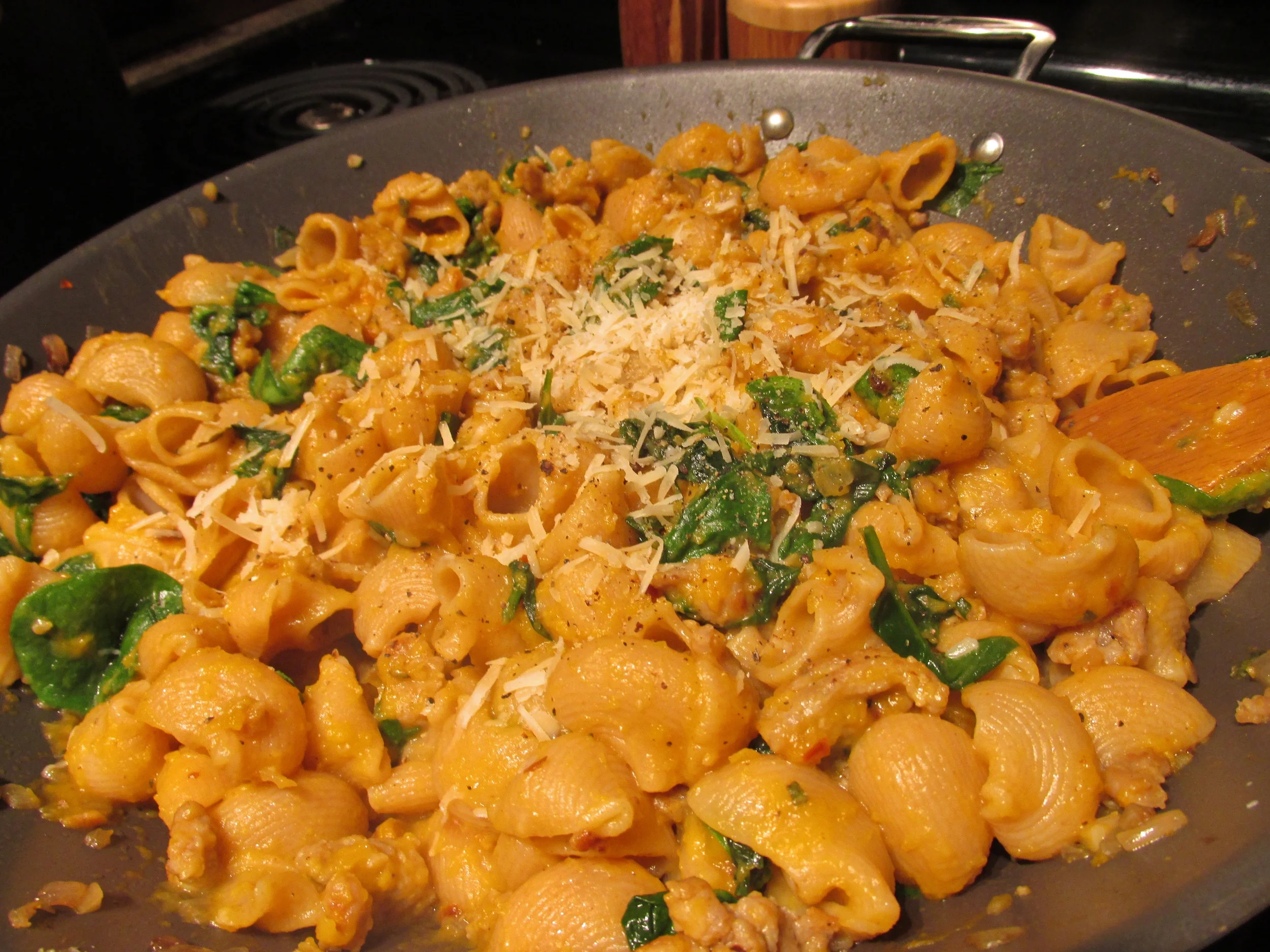 Roasted Butternut Squash, Sausage, and Spinach Pasta