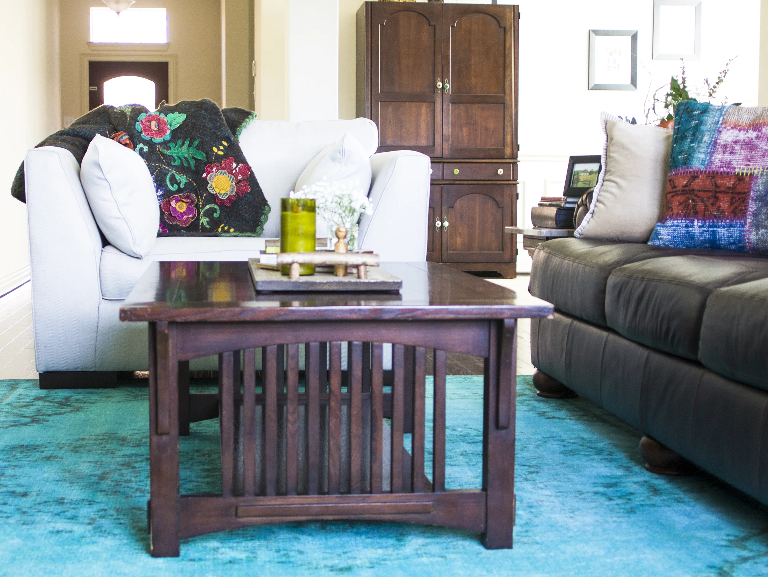 I have had the same furniture and pretty much the same style in our house since I moved to Orlando after graduating college and even early into our marriage. When we bought our house in Houston, I decided it was time to revamp the overall feeling to my decorating style. The new house was bright with an open floor plan and was begging for a fresh take on my bohemian home decor style. I knew I still wanted a bit of boho, but with an updated twist. The living room was the first place I wanted to start, along with the office which I transformed the should be dining room into a work space that is open and quite lovely to be in. After all I spend about 50% of my day right at this very computer screen, and I have never had a special space that felt like an actual office. I started in both rooms by finding rugs that became my inspiration pieces from Rugs USA. If you have never checked out this website, you definitely need to the next time you are thinking about buying new rugs. Their prices are great, the quality is fantastic, and they have something to fit everyone's style!