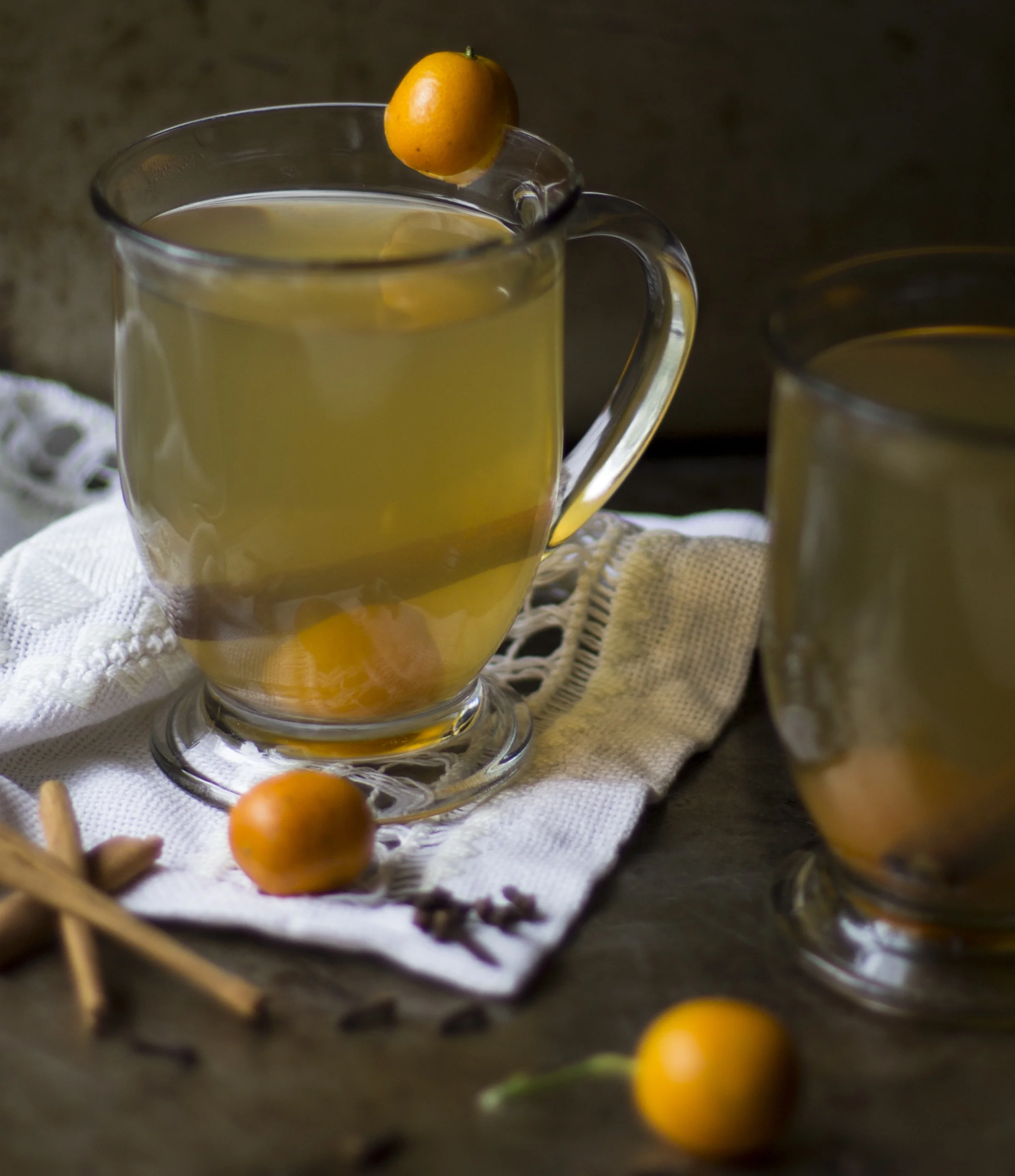 I am a big fat weenie when it comes to cold weather. I would never survive a winter in the north. I barely survive the two months out of the year here in Louisiana that get cold. And this week has been one of those dreary and cold weeks. The sky is grey, the air is damp, and I'm under a blanket with not so attractive house shoes on while I sit here and write. Our house is built off the ground and it doesn't keep heat well and sometimes I feel like I can't get warm, no matter how many layers I put on. There are only two things that help that situation...a hot bath or a hot toddy. I think we'll go with a hot toddy... My kumquat hot toddy will warm you up and will also help fight off any yucky winter colds that might be trying to attack.