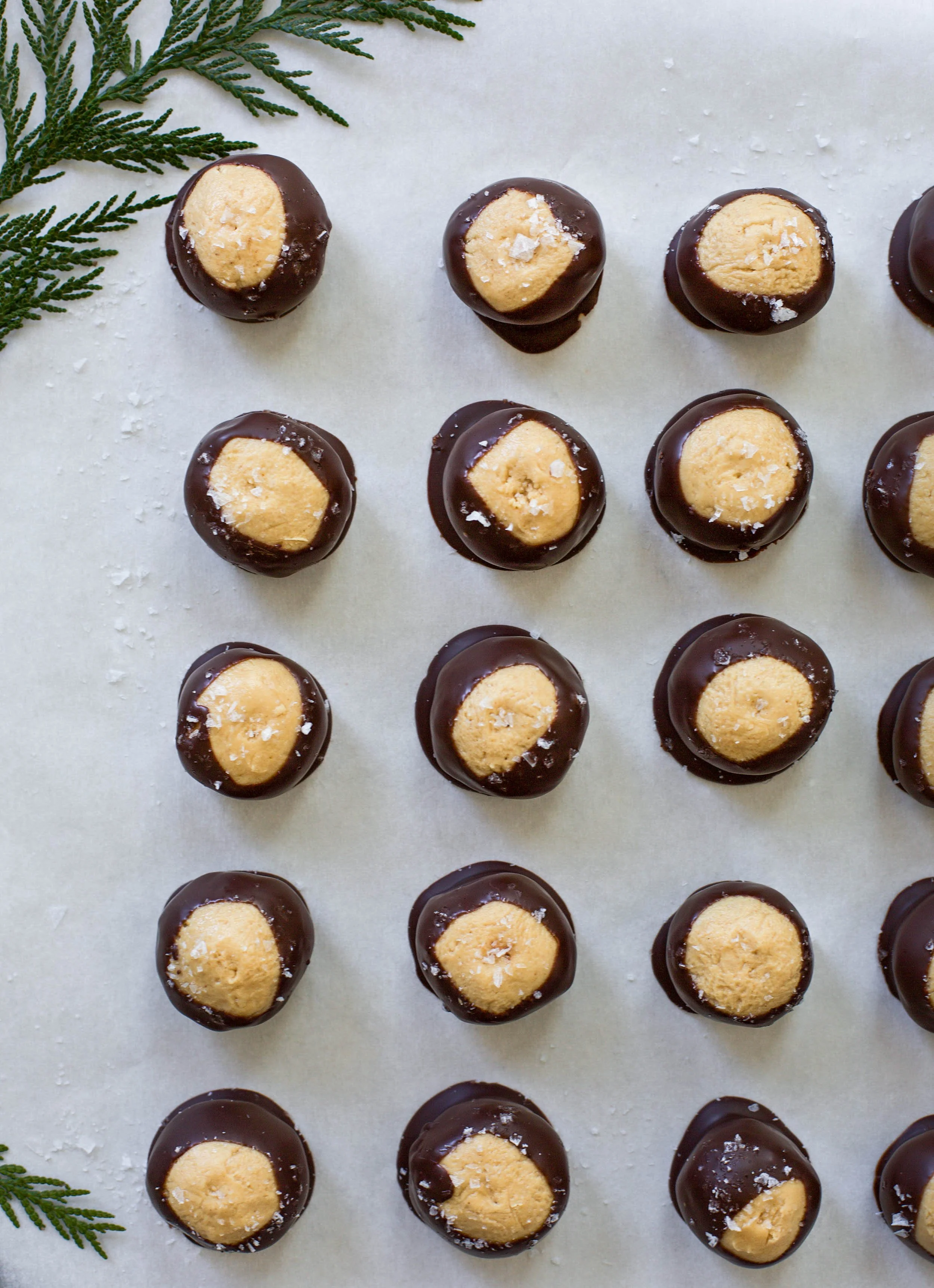 One of my favorite gift ideas to give during the holiday season is homemade goodies. There are so many options of sweet treats to make, but buckeyes are a classic homemade sweet treat that my mom has made during the holidays for as long as I can remember. I added my own twist on this recipe by adding a little flaky salt on top to balance out the richness of the buckeyes to make them even more irresistible. This recipe for salted buckeyes is one that you are going to want to make every single year.
