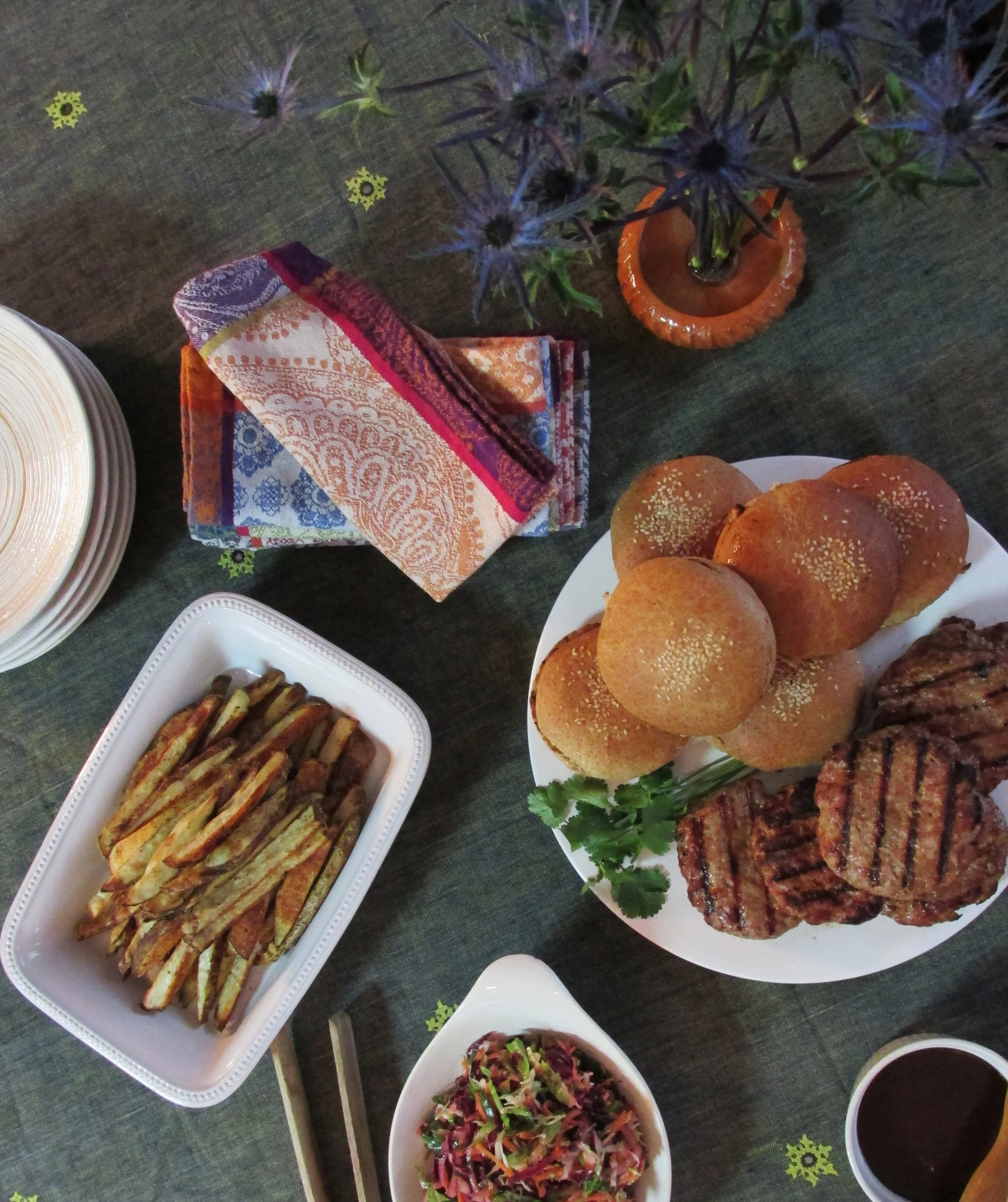 They are juicy and garlicky, and then you top them with the slaw and it's basically like throwing a party for your mouth. Oven fries become the perfect side that keeps this meal on the healthier side while satisfying that good ole burger craving that comes calling on a regular basis (well for me anyway).