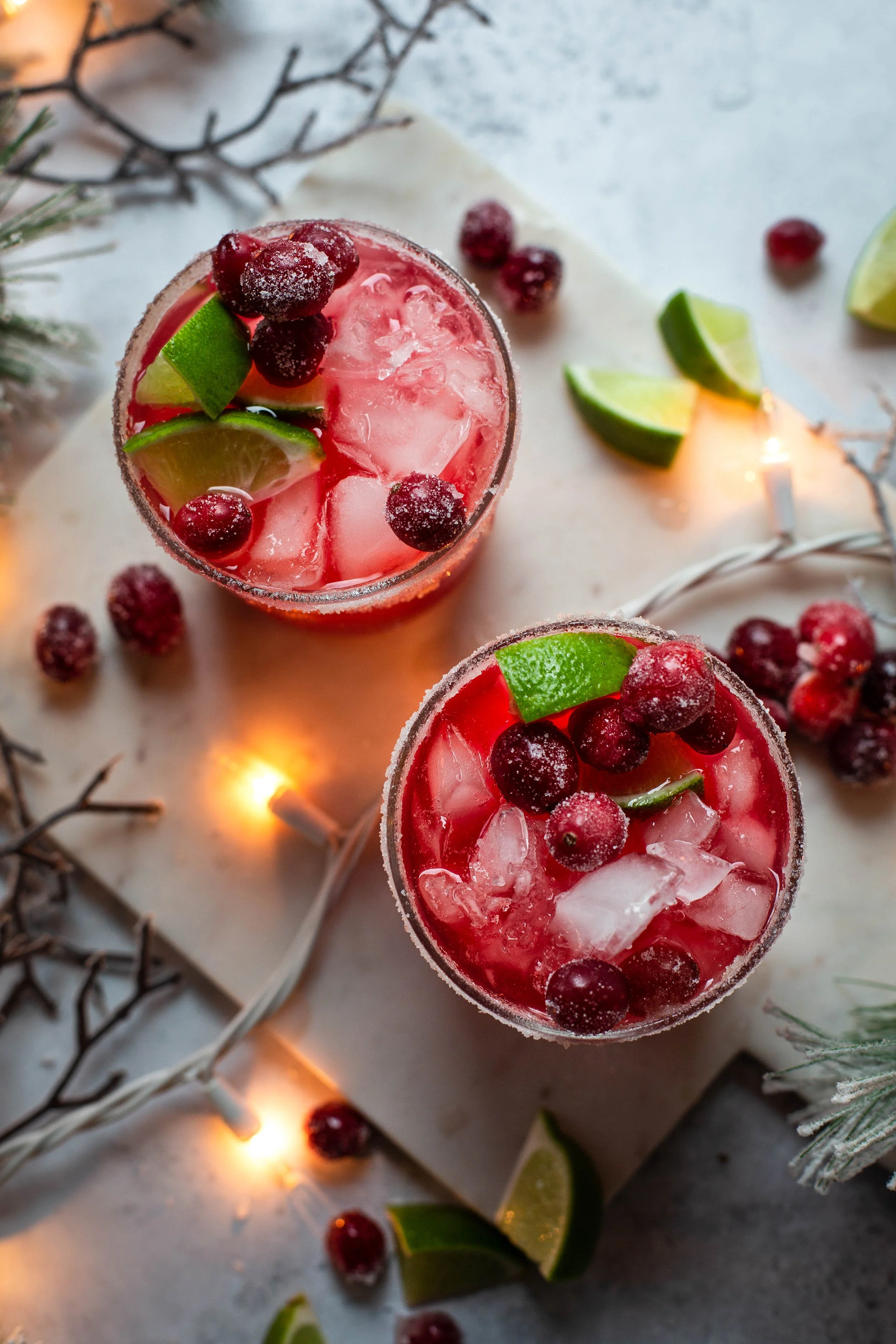 Festive cocktails are a must at this time of year and cranberries couldn’t be more perfect for using in all sort of drink recipes. I happen to love making margaritas with cranberries because their tart flavor goes perfectly with lime juice, tequila, and a few sugared cranberries. The color is a vibrant reddish pink and its perfect for holiday entertaining. This recipe for my delicious cranberry margaritas is one that you will be making all holiday season long.