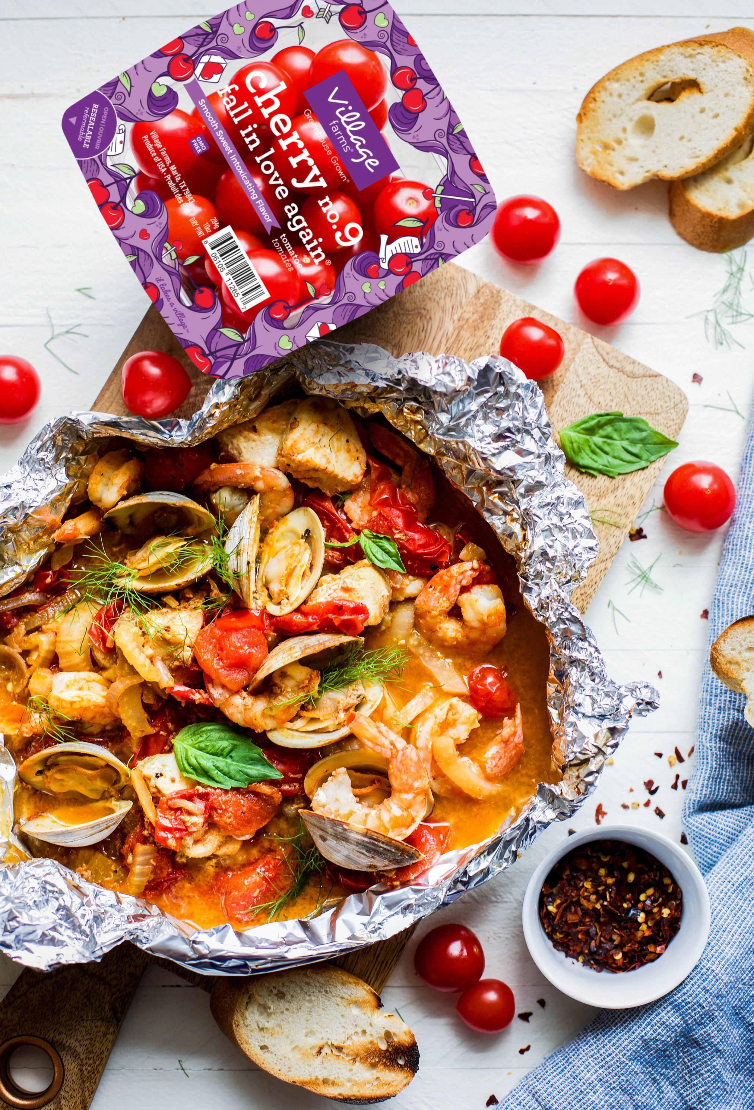 It’s time for our second Supper Club y’all! I am so excited to cook and hang out with you guys for the second Supper Club this year! I love Supper Club because it’s a place where we can come together as women and cook, chat, and support each other all while being miles apart! That’s the beauty of a virtual Supper Club and I love that anyone can be involved! I partnered up with Village Farms again to bring you the best Summer recipes for grilling and entertaining all summer long! My Spicy Asian Cucumber Noodle Salad and my Grilled Cioppino Foil Packets are two fresh and delicious recipes that are perfect for patio hanging with your friends and family!
