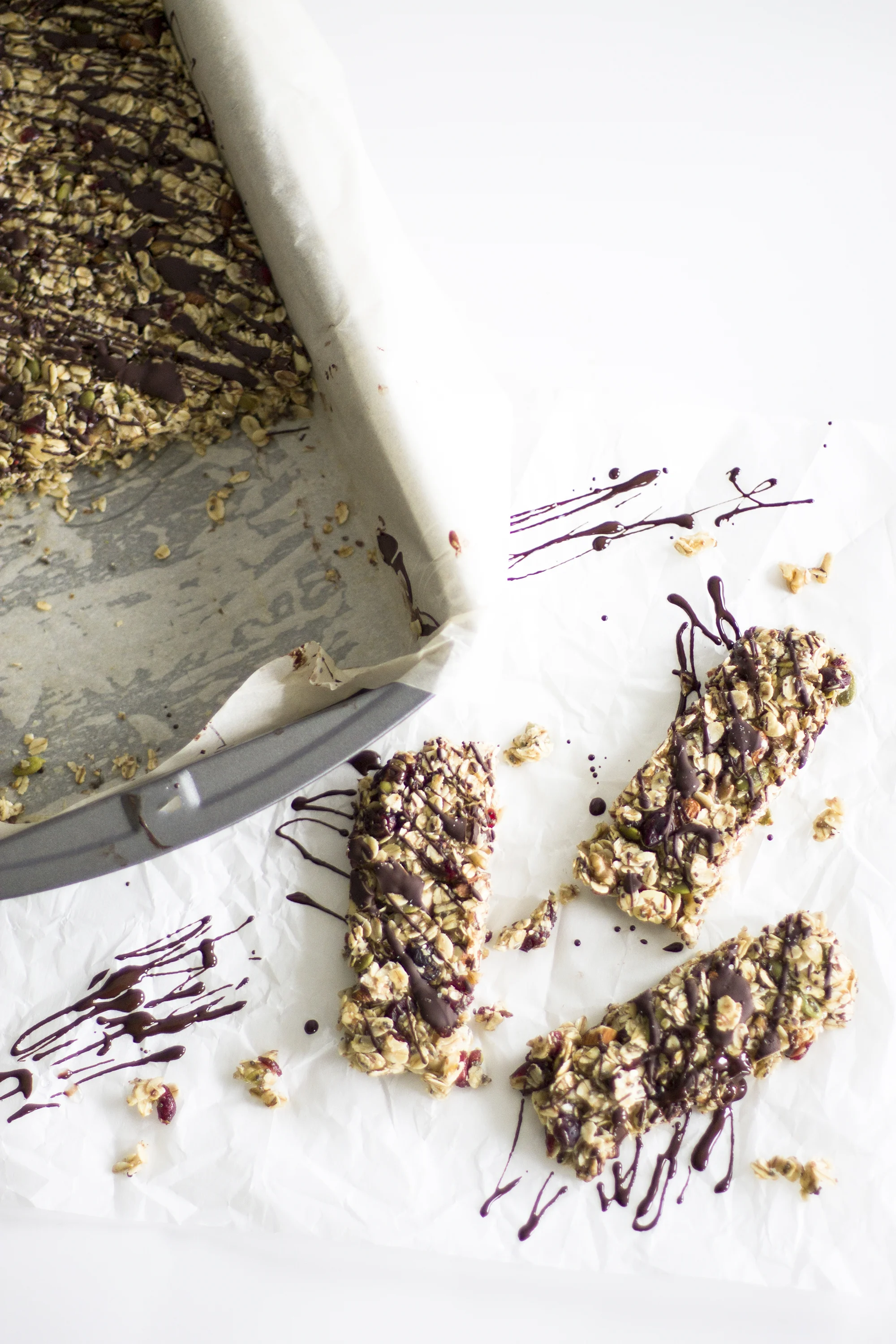 Happy day after Labor Day guys! How was your weekend? I hope you did the opposite of labor and got to relax with your family and friends! Canean was out of town for a couple of days and I started binge watching Friday Night Lights on Netflix, which I had no idea was going to suck me in like it did! I also had a fabulous brunch Sunday morning with a girlfriend before picking the hubs up from the airport! Yesterday, we lounged around, walked the dogs, and ate big juicy cheeseburgers for dinner! Needless to say, we are both in need of some healthy for the rest of the week! I love having snacks like my homemade nutty granola bars on hand for weeks just like these!