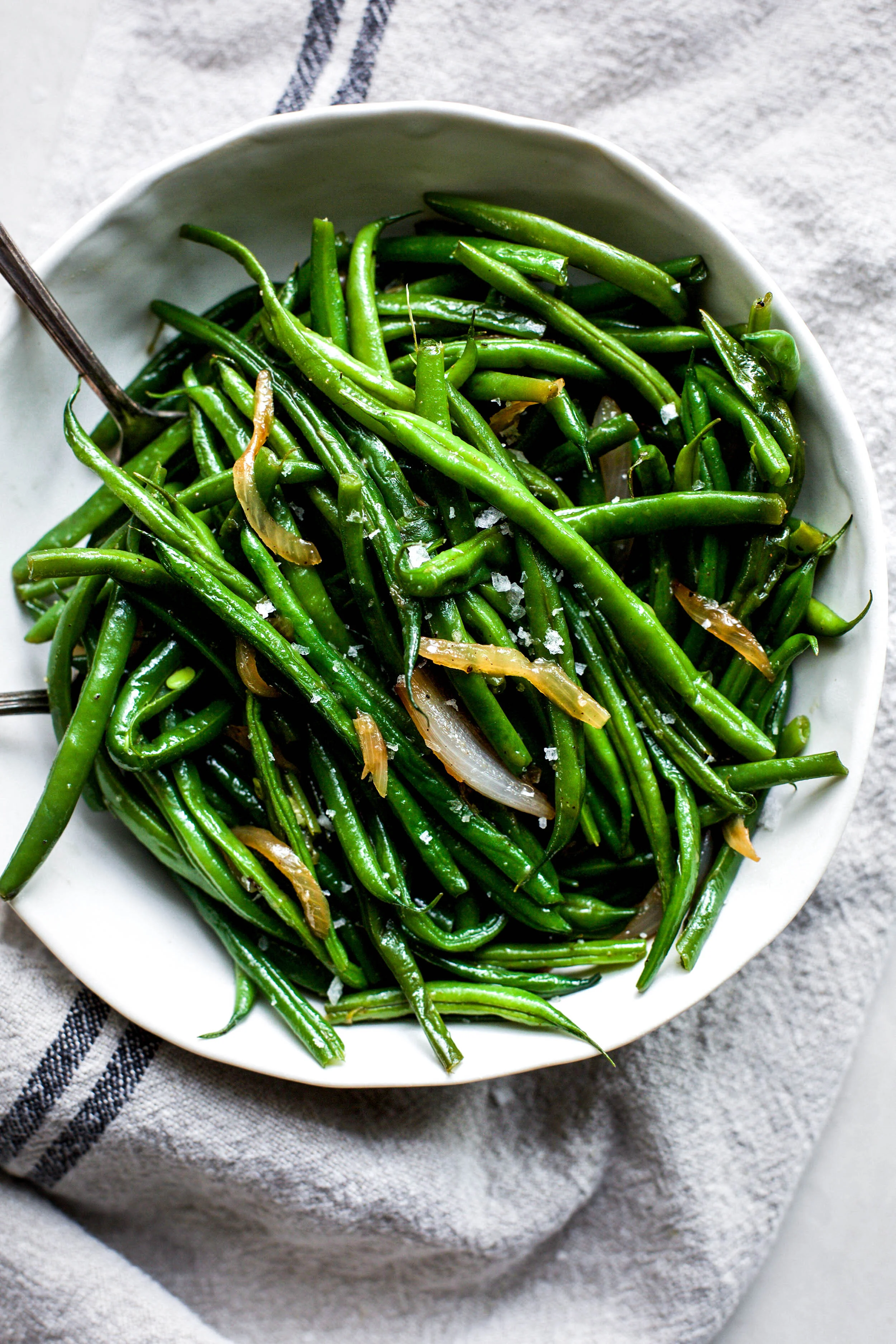 Green beans are a staple for a vegetable side dish at our house. There are so many ways to cook them, but I have found my favorite method and no other beans compare. These green beans are the kind of veggie side dish that you will want to make over and over again because they are just that good. We have them at least once a week at my house and eat them like they are French fries, true story! You will not have a problem getting your kiddos or any other picky eaters in your house to eat their green vegetables with a recipe like this. My Garlic and Shallot Green Beans are going to become your new favorite side to serve with almost every meal.