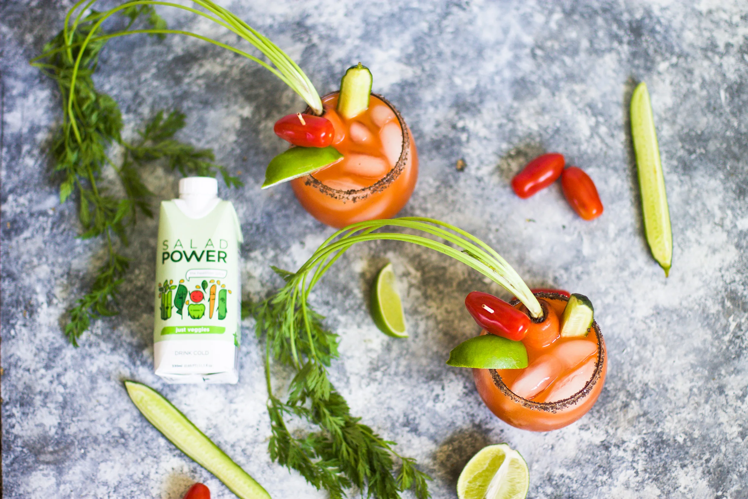 As a mom there are two things I can't live without. Those things are healthy foods for my body to give me lots of energy throughout the day and delicious cocktails to keep me sane. I am always looking for easy ways to get as many nutrients in my body as I can without a whole lot of effort and of course I am always mixing up new cocktail concoctions on a weekly basis (because hello I have an 18 month old.) That's why I partnered up with Salad Power to create a delicious and healthy cocktail that is the perfect addition to you brunch this weekend! My spicy sriracha veggie micheladas are easy to make and so full of flavor that you are definitely going to want to try out Salad Power for yourself!