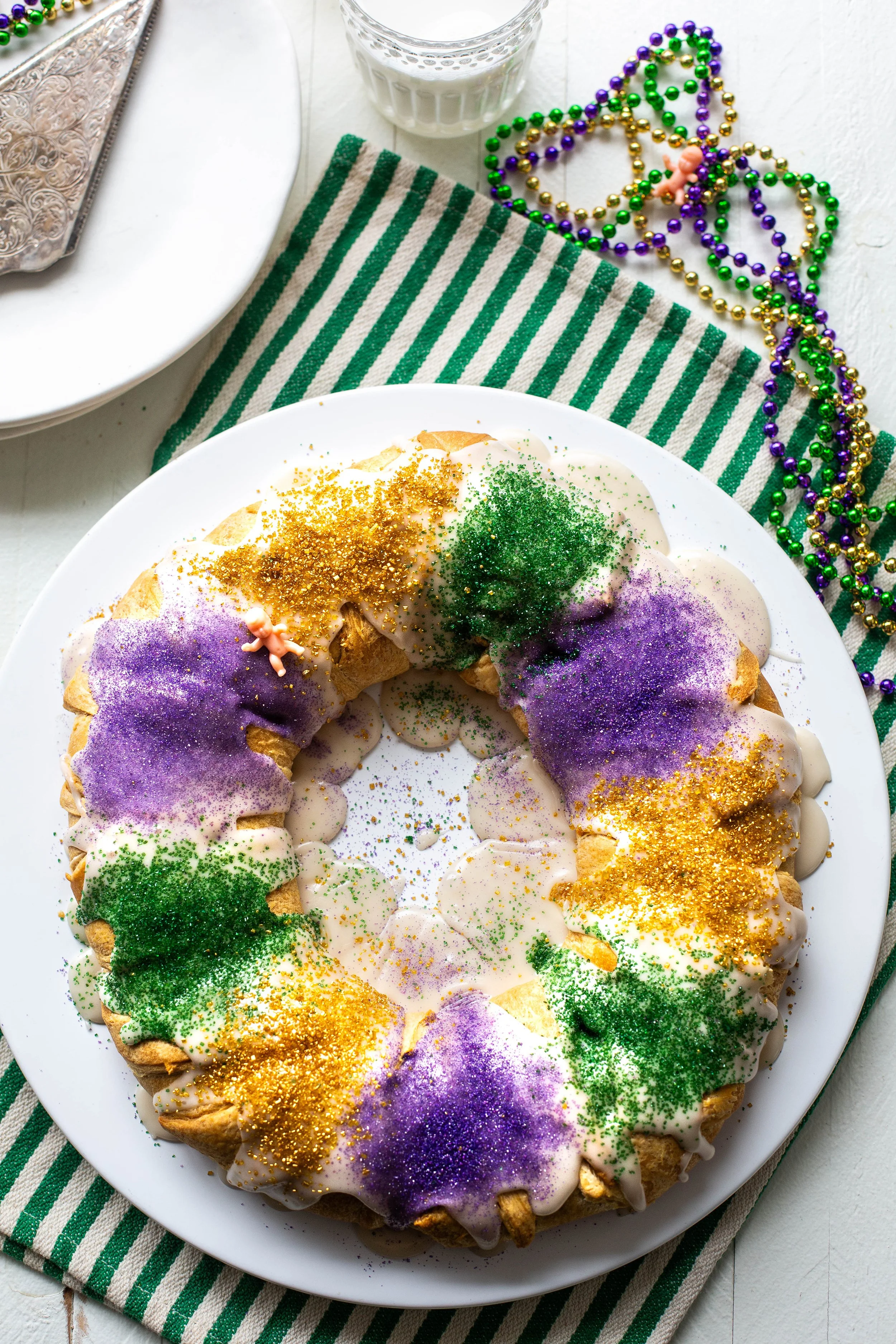 It’s officially Carnival season, which is my second favorite time of the year because Carnival season also means King Cake season! I partnered with my friends at Tony Chachere’s to create this delicious short cut pecan praline cream cheese king cake that is made with crescent rolls so that you can enjoy a delicious king cake with way less effort and time. This shortcut king cake has a delicious cream cheese pecan praline filling and tastes just like it was made from scratch! You are going to love making this shortcut king cake version every single year!