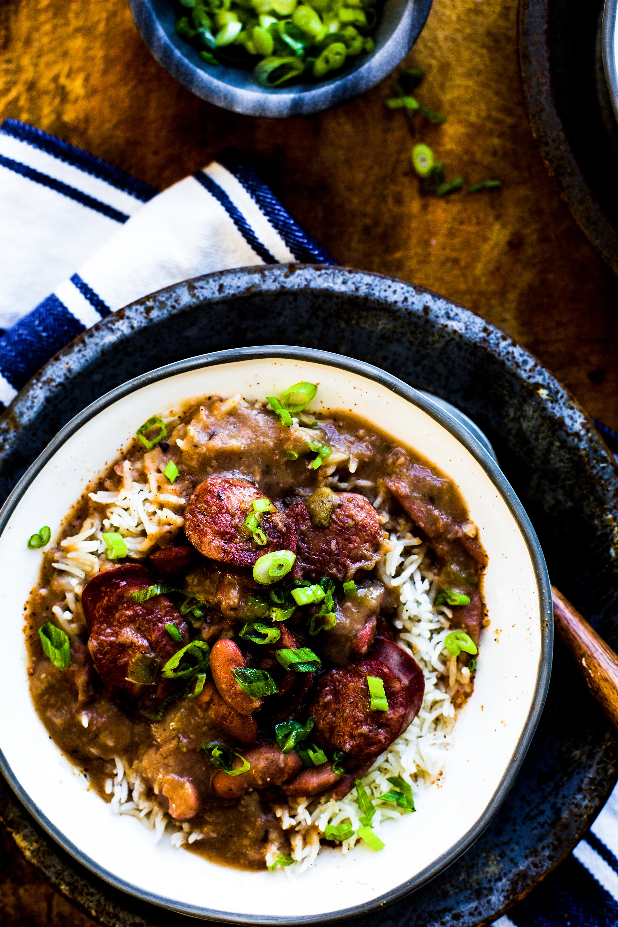 I must be missing Louisiana lately, because I keep making my favorite traditional dishes. Yesterday I made a homemade king cake because I have been craving one for weeks now and today I woke up dreaming about red beans and rice for dinner. We have lived in Texas for almost four years now, but every year around this time I start to miss Louisiana and all of the food and celebrations that happen from Mardi Gras on. The classic dishes that are known in Cajun and Creole cultures are some of my favorite recipes I’ve ever had and truly what made me fall in love with Louisiana when I moved there. My easy red beans and rice is just that kind of recipe and makes for the perfect cozy weeknight meal that the whole family will love!