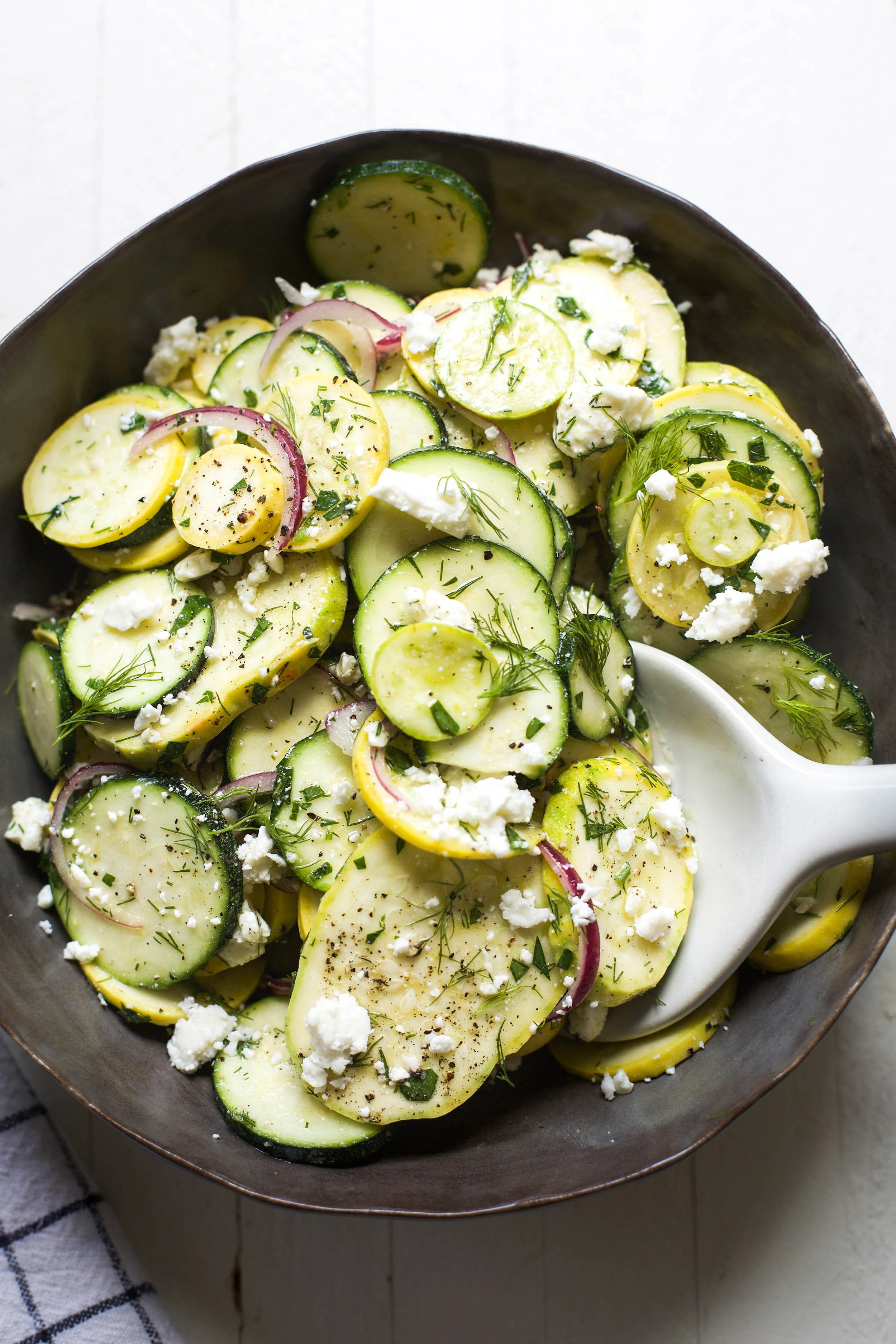 Squash season is here, and while most people tend to prepare it cooked, squash and zucchini can actually be enjoyed raw as well. I find that for people who tend to not love squash and zucchini cooked because of texture, actually prefer to eat them raw for this reason. A squash salad is the perfect side dish to use up all of that squash you have in your fridge all summer long. This recipe for raw squash salad with feta and herbs is a fresh salad that pairs perfectly with grilled meats or fish and is easy to prepare any night of the week.