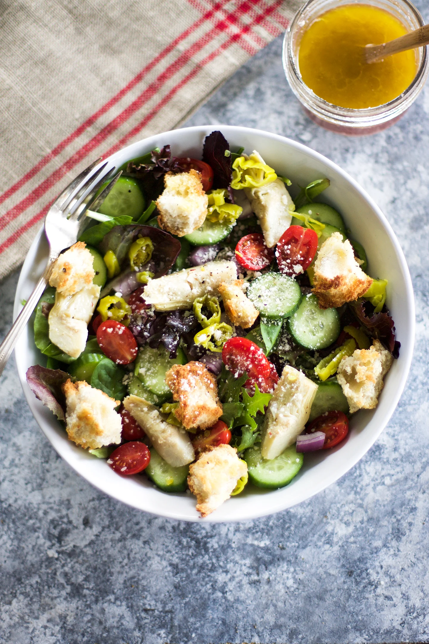 This week started out a little crazy because I had to finish all of my cookbook edits for Baby's First Bites (which will be released in the Fall in case you didn't know!) I mean, it's only Wednesday, but I am positive it should be Friday already. Do you ever have weeks like that? Well this week is one of those for me and easy is the name of the game for all things in the kitchen. I haven't had the time or the energy for anything but easy recipes and one of my favorites go-to's is the best house salad that you will ever make at home!