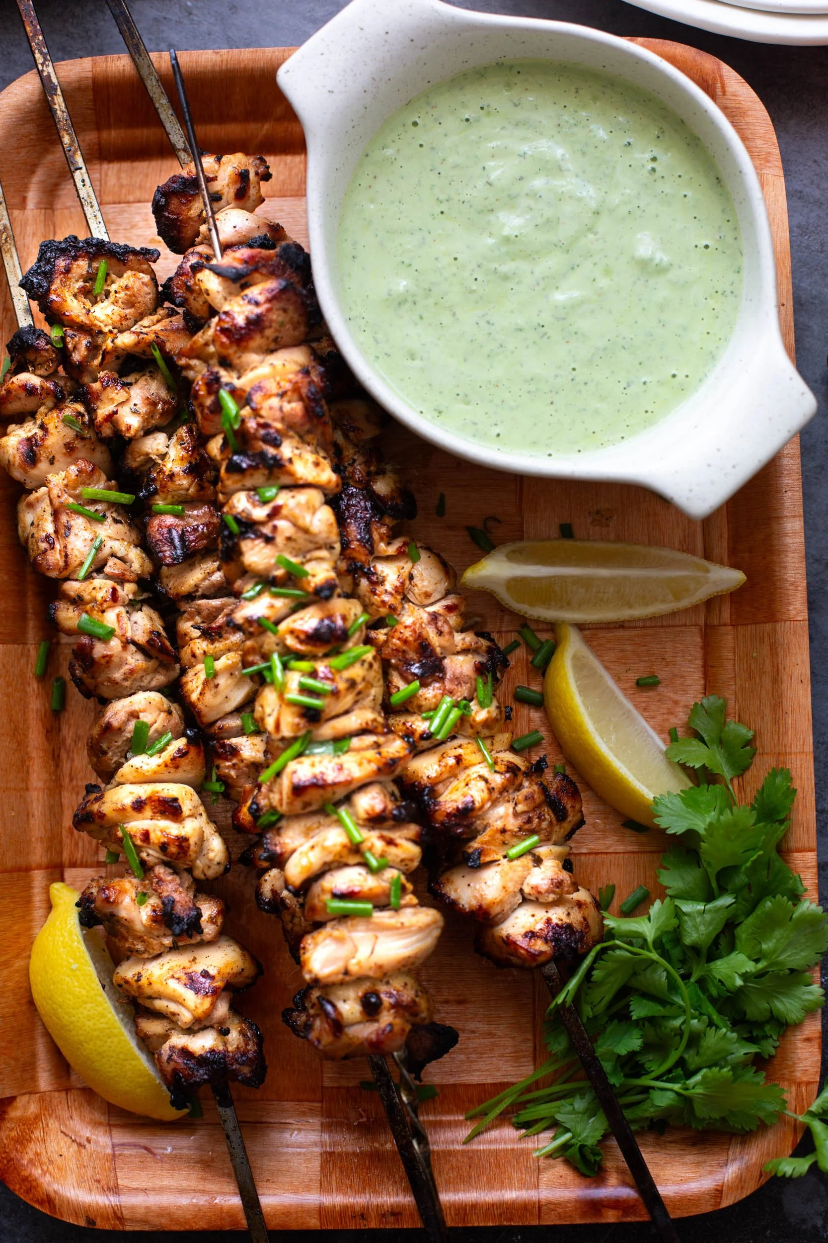 One of my favorite chicken recipes to make while grilling season is still in full effect, these blackened chicken thigh skewers with a cilantro ranch jalapeno ranch dipping sauce are perfect for serving alongside roasted potatoes, a side salad, or some rice. The chicken is marinated in my favorite Tony Chachere’s chicken marinade and then seasoned on both sides with their Spices and Herb seasoning for the ultimate blackened and tender chicken. I make an easy dipping sauce to go alongside that you will want to keep in the fridge at all times for all of the things! These blackened chicken thighs are a must make before the end of summer!