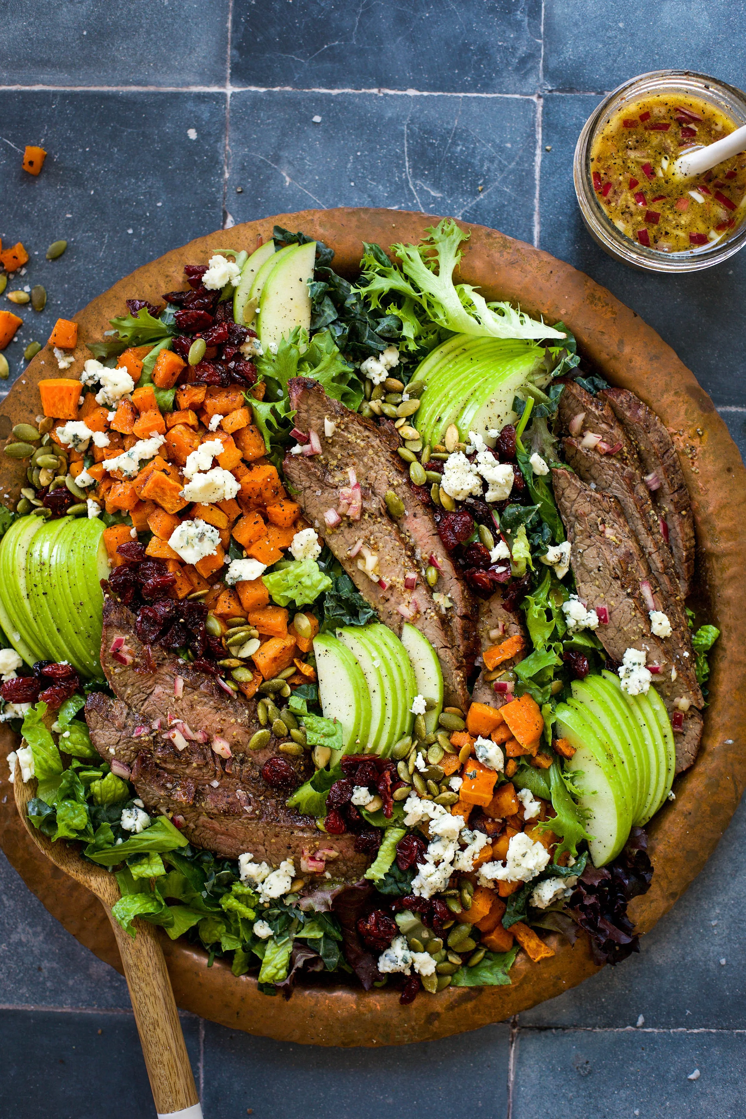 While soups tend to get all the glory during the fall and winter months, let me remind you that a fall salad can be quite delicious, hearty, and satisfying too. It’s all about the combination of using seasonal ingredients to really make the salad shine. This combination of steak, roasted butternut squash, and apples come together on a bed of mixed greens and has the perfect combination of flavors and textures for the ultimate fall dish. This recipe for a fall steak and butternut squash salad is going to quickly become a weeknight dinner staple for the whole season.