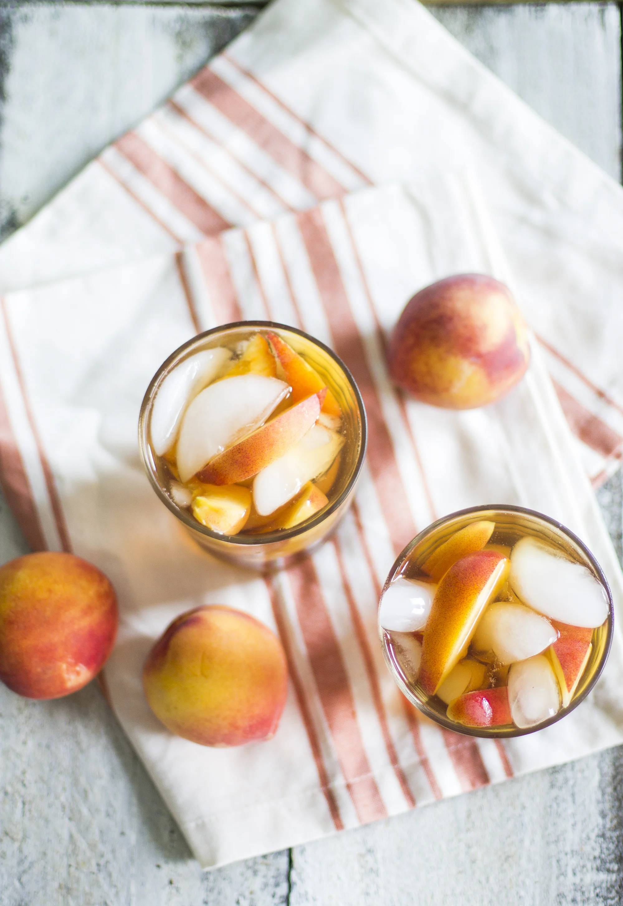 If ever there were a trio that was meant to be together, it is sweet tea, peaches, and bourbon. The flavors pair effortlessly together creating the ultimate refreshing cocktail! Peaches are just coming into season meaning they are getting sweeter and sweeter by the week and that means I am entering my peach obsession phase. Which apparently I have had since I was a little girl. My mom will tell you that I would eat as many peaches as she would give me and not much has changed!