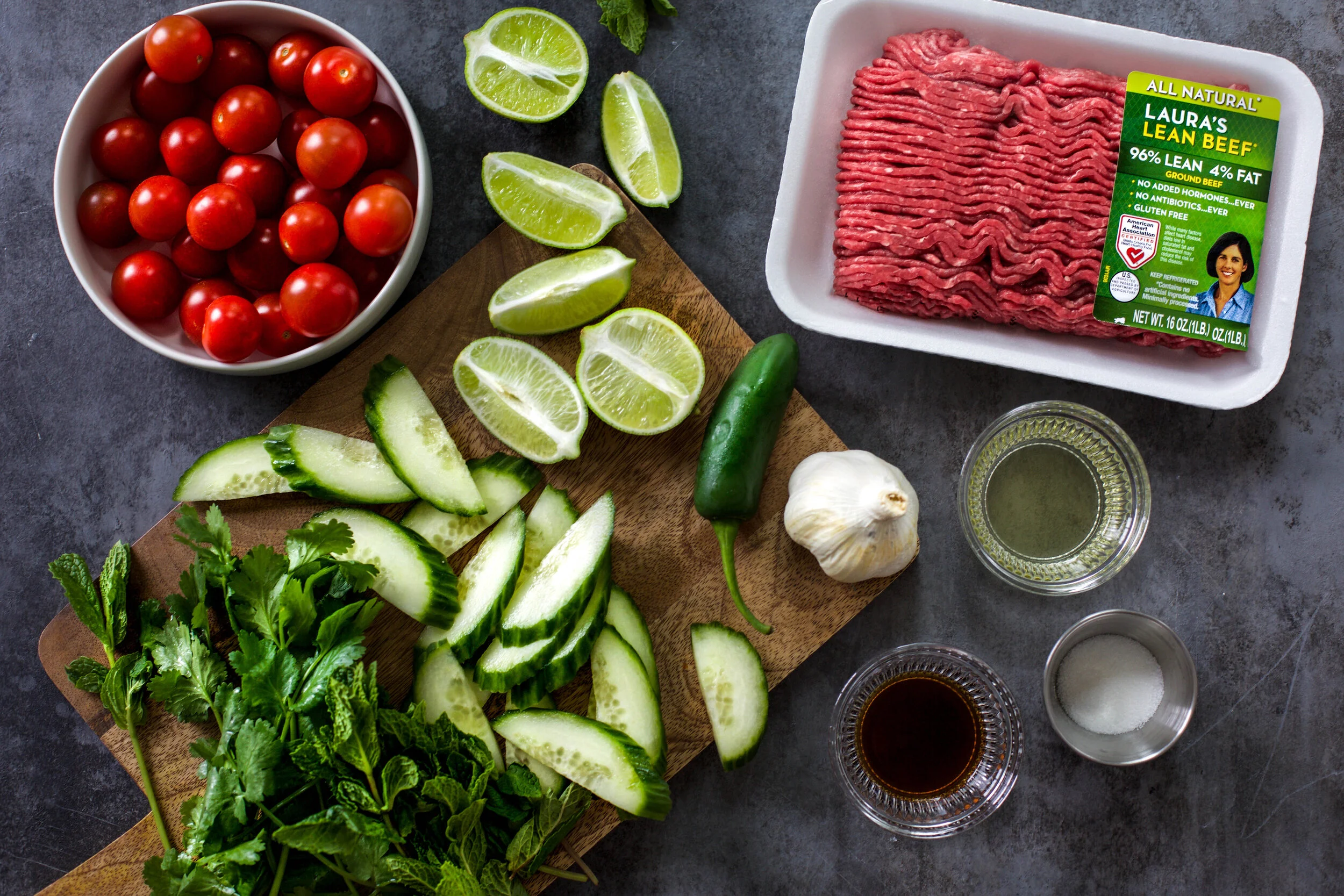 You are going to love making this salad over and over again and you will also love adding in Laura’s Lean Ground Beef into your weekly grocery run to set you up for easy meals every week!