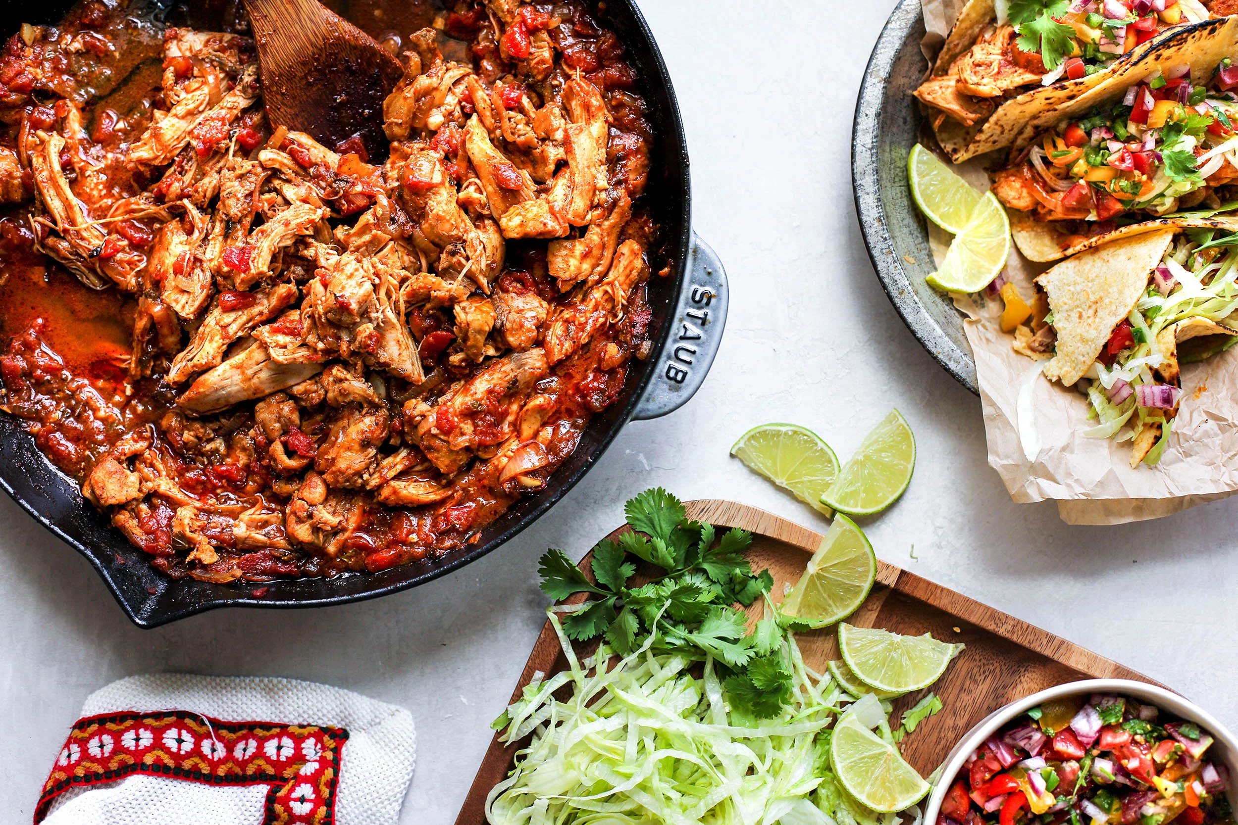 This recipe is so great for the whole family and is honestly so easy too! I take boneless, skinless chicken thighs and sear them in a large cast iron skillet and then make a delicious sauce for them to finish cooking in the oven right in the same pan. The result is tender, full of flavor chicken that makes one incredible taco! I top them with fresh pico de gallo and shredded lettuce which really sends the flavor over the top! This recipe might just be my most favorite taco recipe I’ve ever made! I mean I hate to choose, but if I had to, I just might pick these chicken tacos!