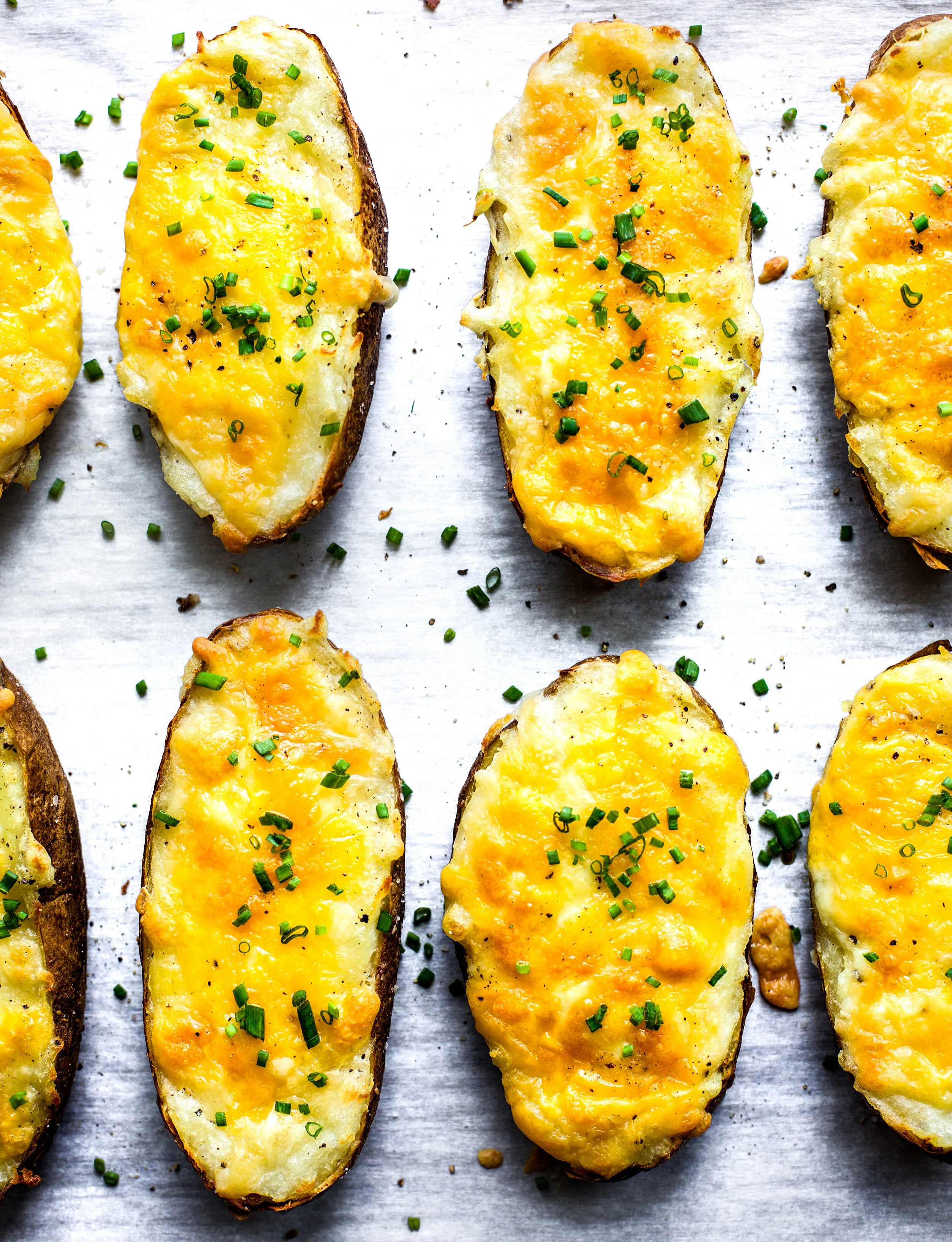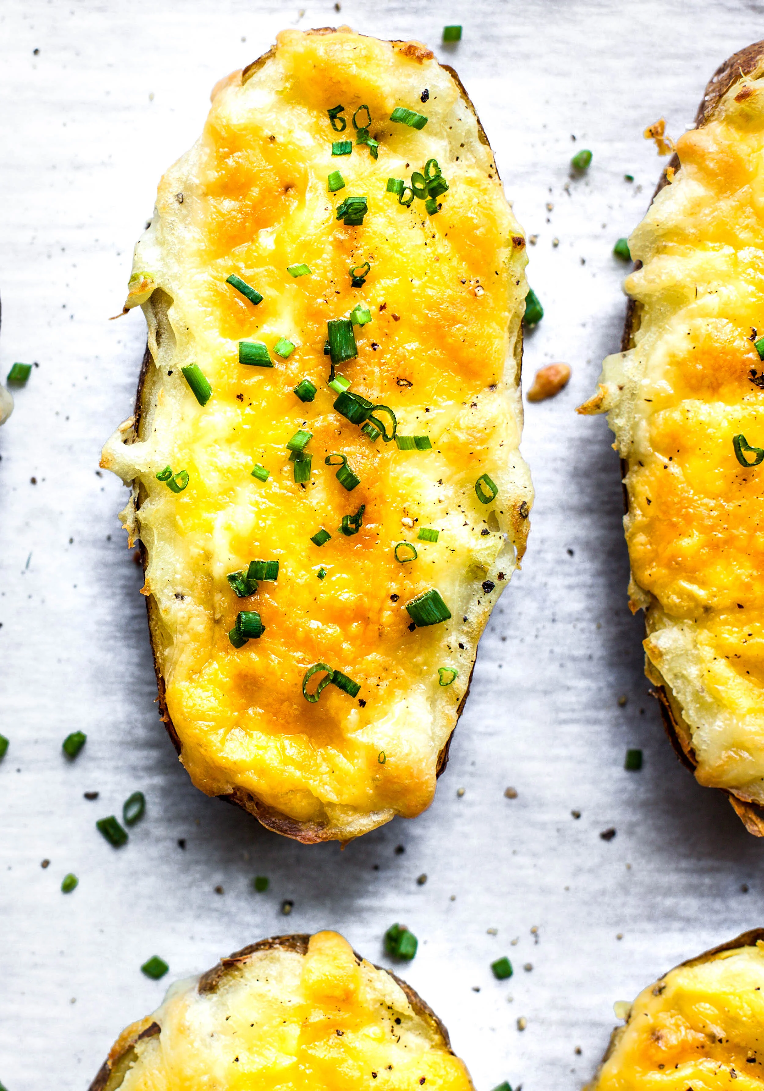 This recipe has been one my family has been making for forever and I am so excited to finally share the full recipe with you! It doesn’t really get much better than creamy potatoes stuffed inside a crispy potato skin topped with melty cheese. Drool worthy, let me tell you! These potatoes are truly one of my favorite side dishes, but they could easily be made into a meal of their own with a nice big salad. Either way, you simply have to make them, preferably sooner than later!
